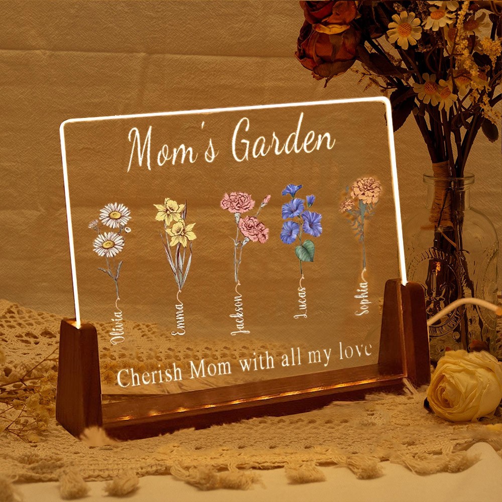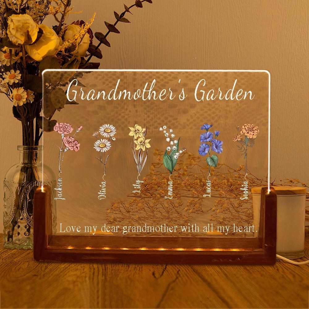 Custom Grandma's Garden Birth Flower Night Light with Kids Names Gifts for Grandma Mom Unique Mother's Day Gifts