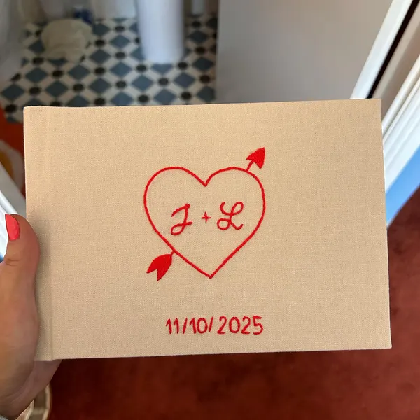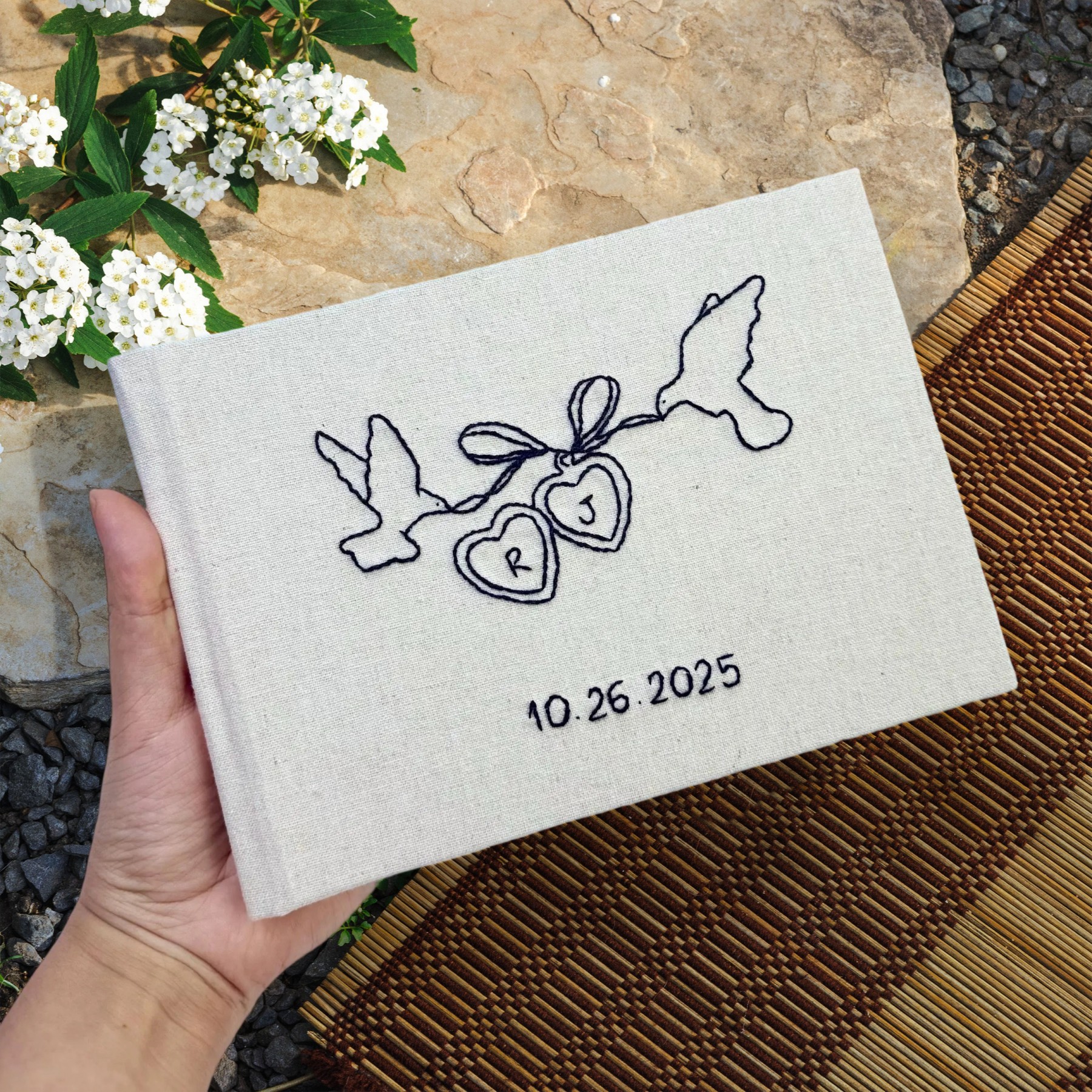 Custom Hand Embroidered Wedding Guest Book with Heart Arrow Design for Couples Unique Wedding Gifts