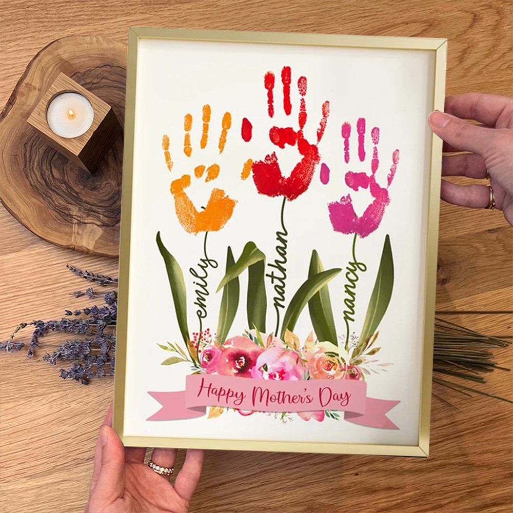 Custom Handmade DIY Handprint Wood Frame With Kids Names Mother's Day Gift Ideas