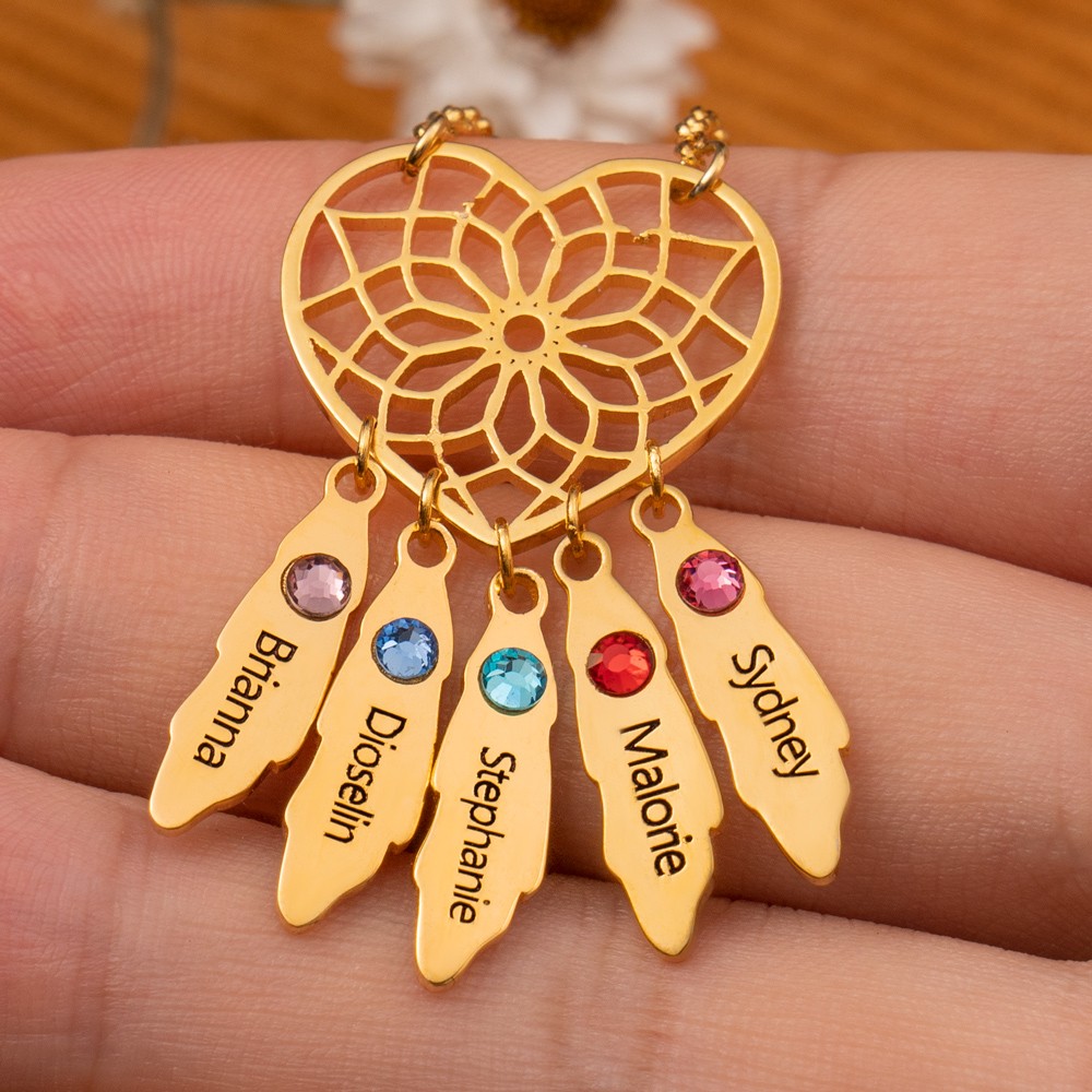 Custom Heart Flower Shaped Birthstones Necklace With Kids Names Personalized Keepsake Gifts For Mom Grandma