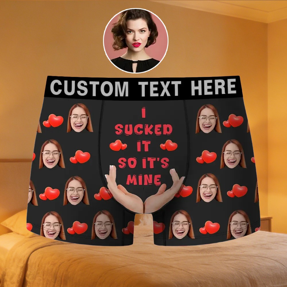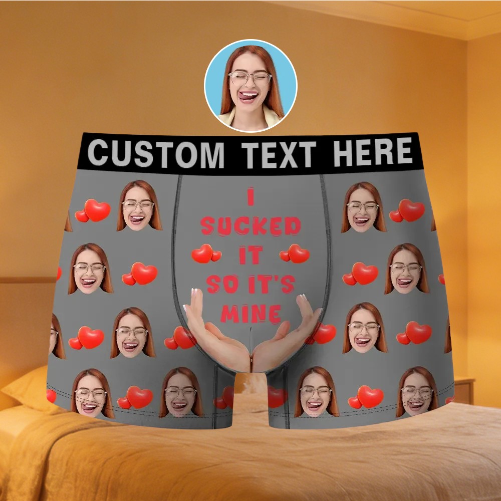 Custom I Sucked It So It'S Mine Face Men's Boxer with Text Gifts for Boyfriend Husband Valentine's Day Gift for Him