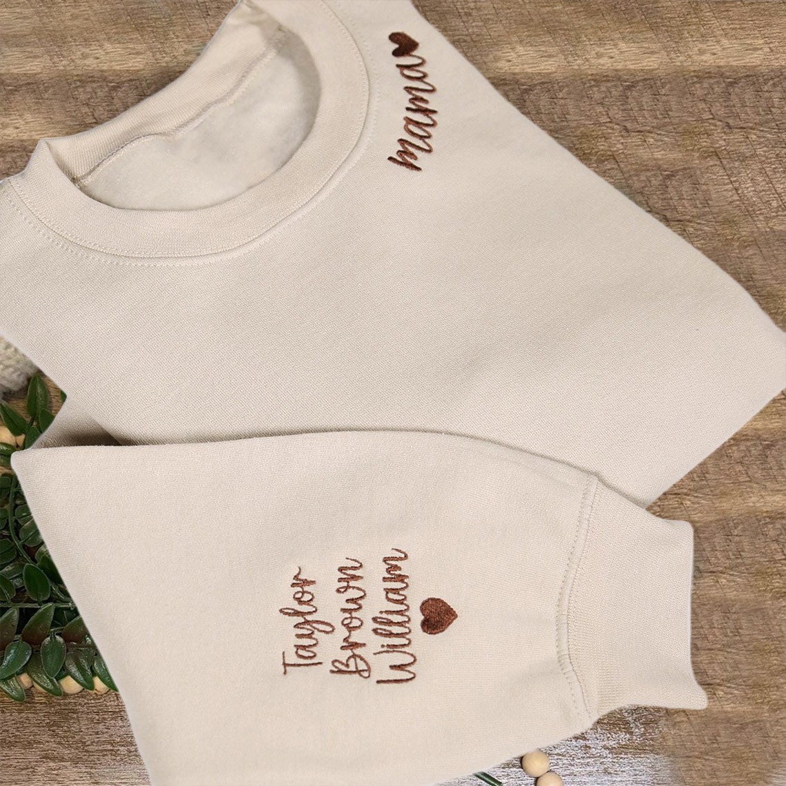 Custom Mama Embroidered Sweatshirt with Kids Names On Sleeve Unique Gifts for Mom Grandma Mother's Day Gift Ideas