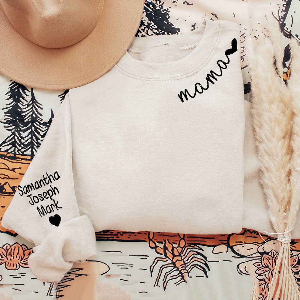 Custom Mama Neckline Embroidered Hoodie Sweatshirt With Kids Names Unique Mother's Day Gift Ideas