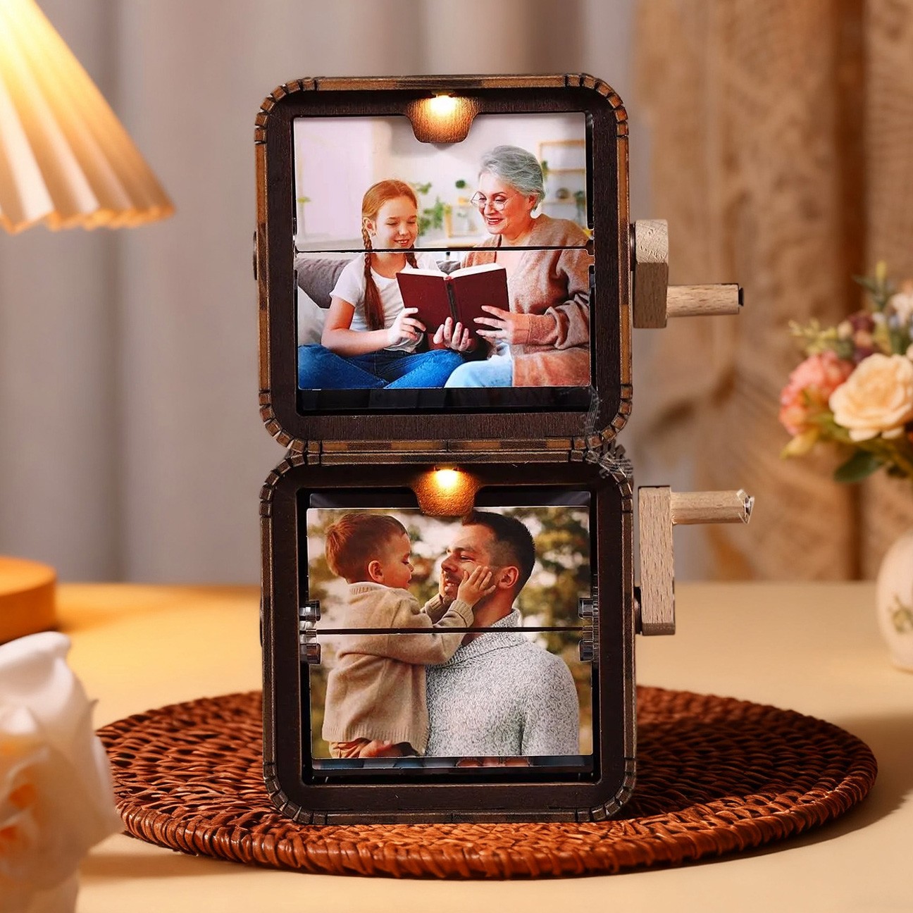 Custom Memorial Wooden Photo Flipbook Box with Light Gift for Mom Dad Unique Family Christmas Gift