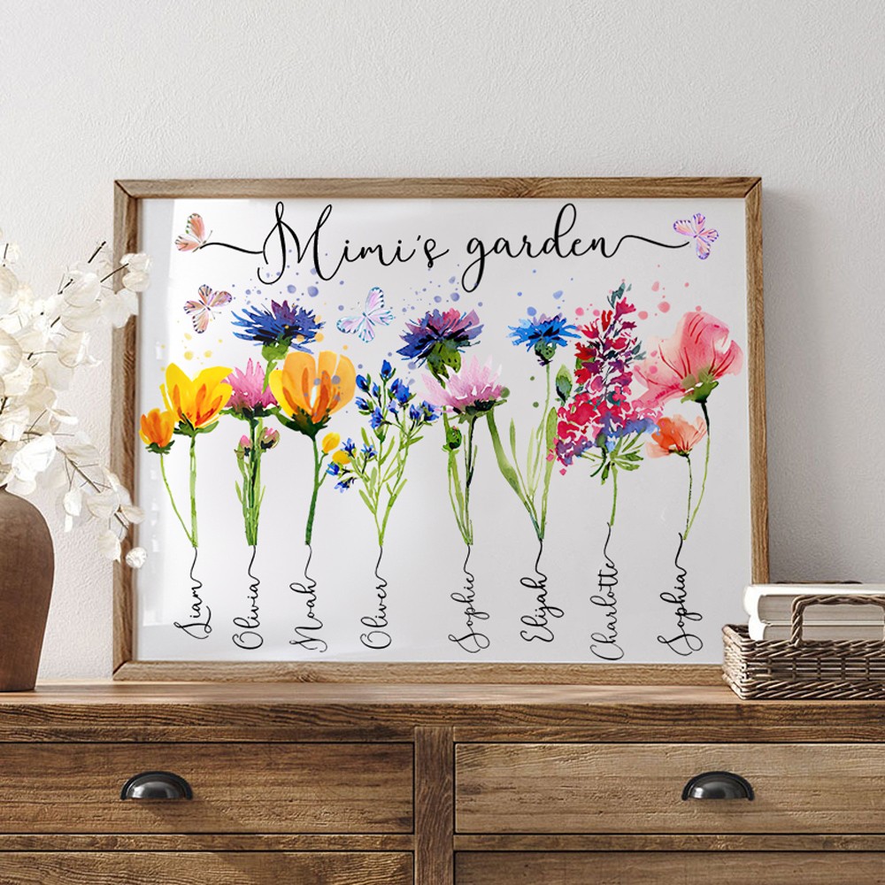 Custom Mom's Garden Birth Flower Frame Wood Sign with Kids Names Unique Gifts for Mom Grandma Mother's Day Gift Ideas