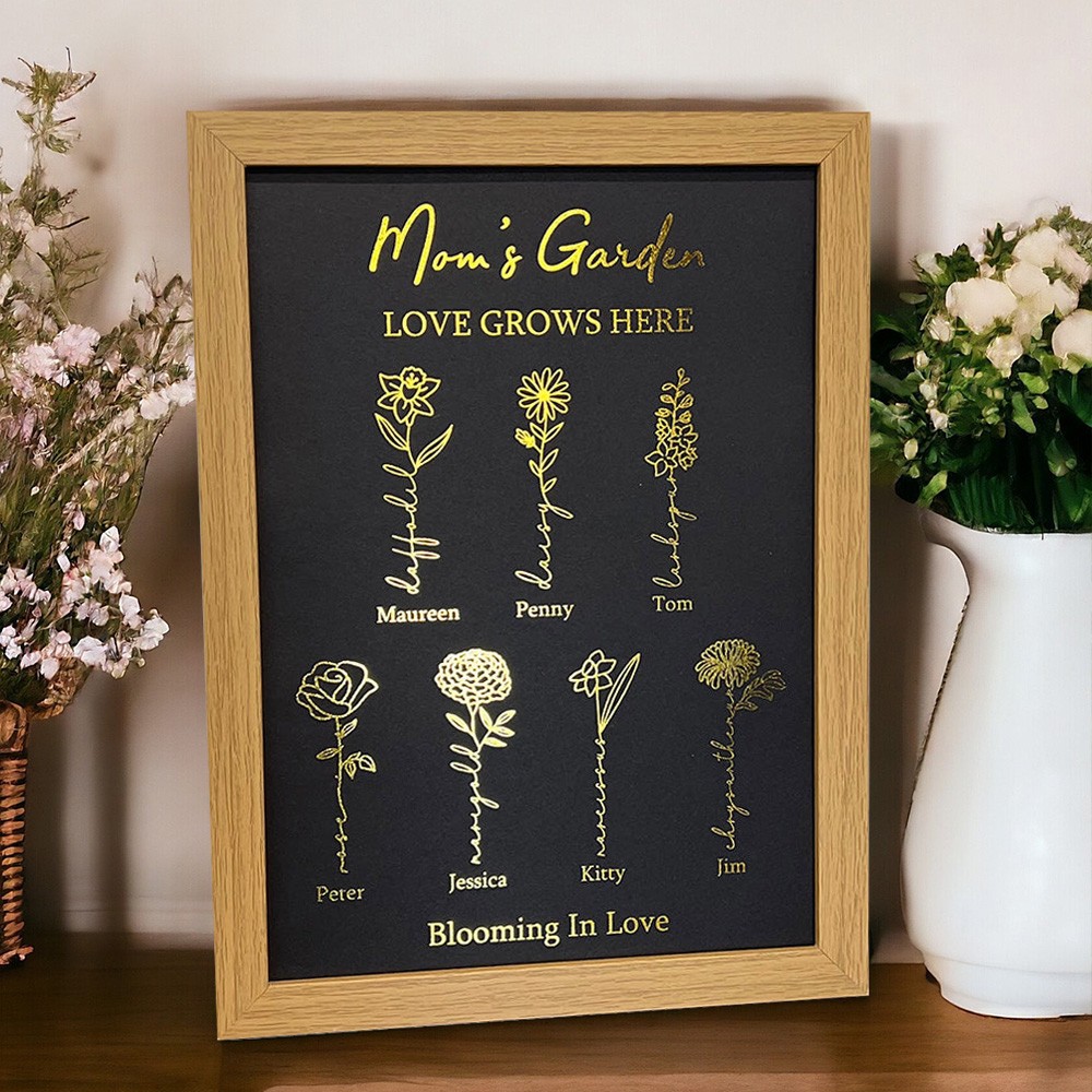 Custom Mom's Garden Birth Month Flower Frame Sign with Kids Names Unique Gifts for Mom Grandma Mother's Day Gift Ideas