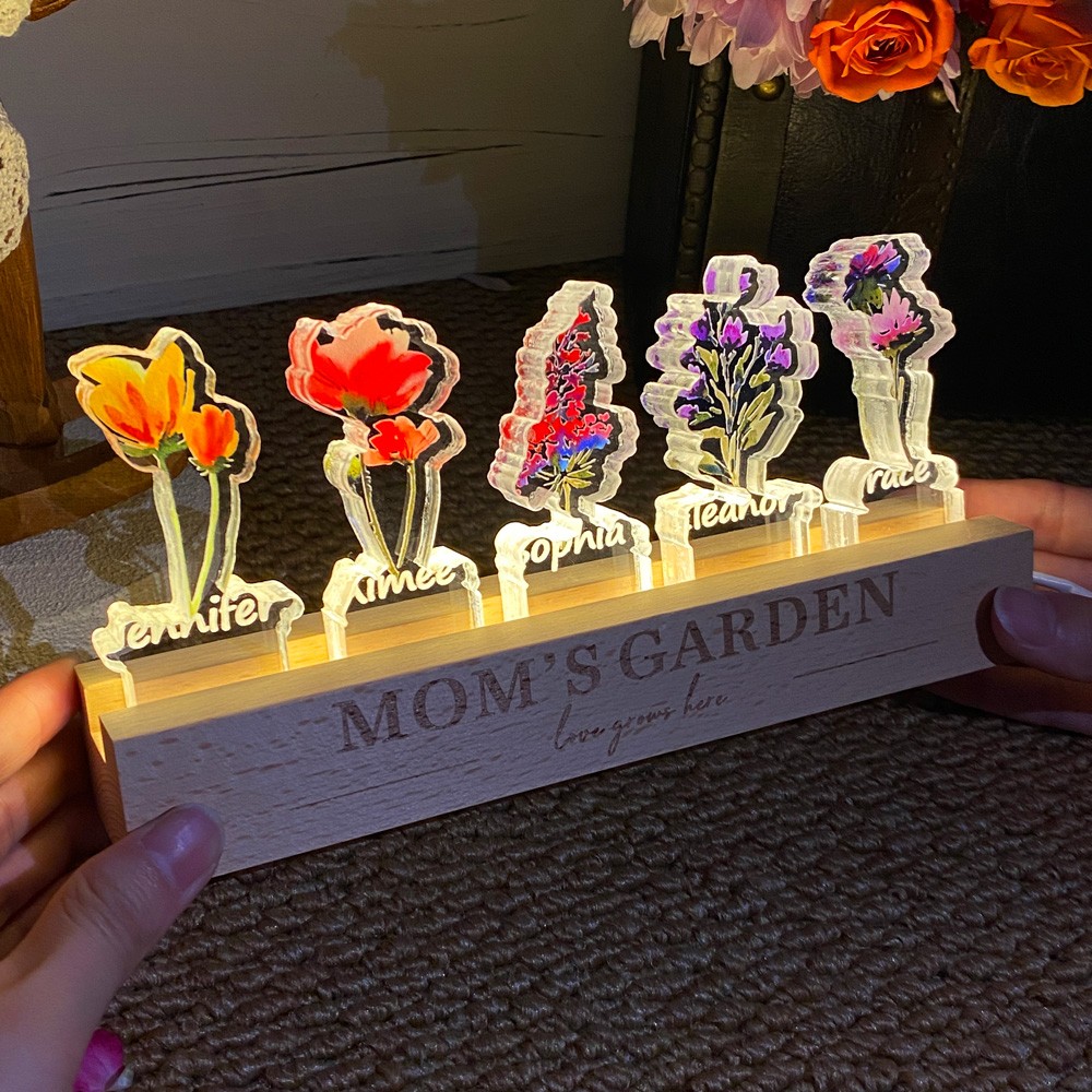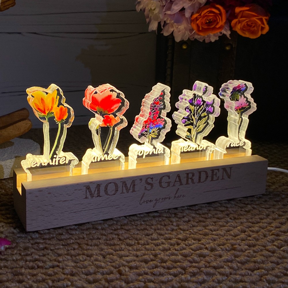 Custom Mom's Garden Love Grows Here Birth Flower Night Light Unique Birthday Gifts For Mom Grandma Mother's Day Gift Ideas