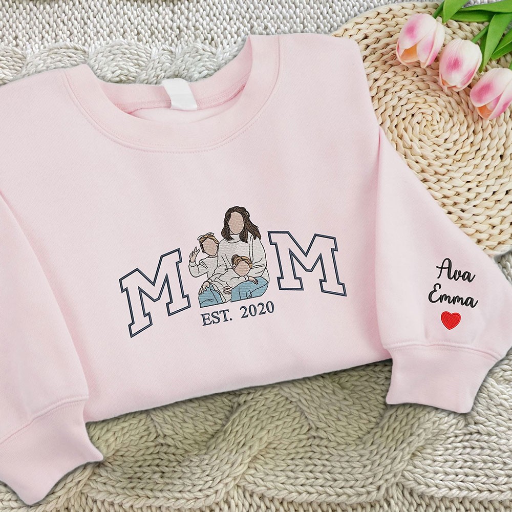 Custom Mom Sweatshirt with Embroidered Photo Portrait New Mom Gift Unique Gift for Mom Mother's Day Gifts