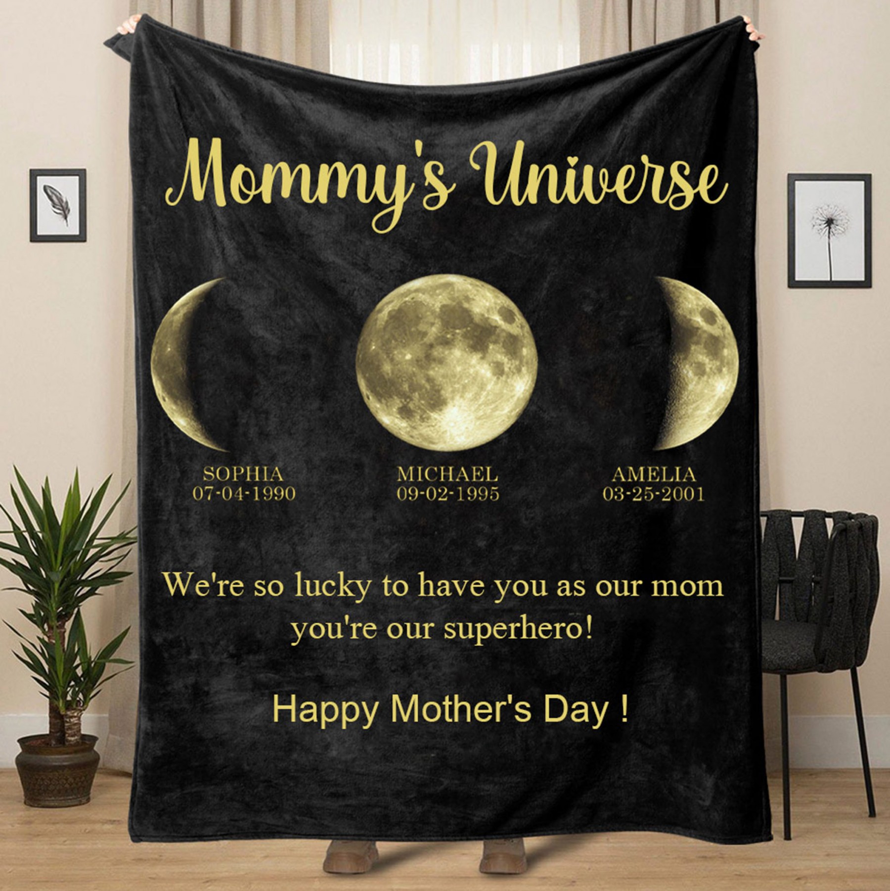 Custom Mommy's Sky Moon Phase Blanket Heartful Gift For Mom Best Mother's Day Gift Ideas