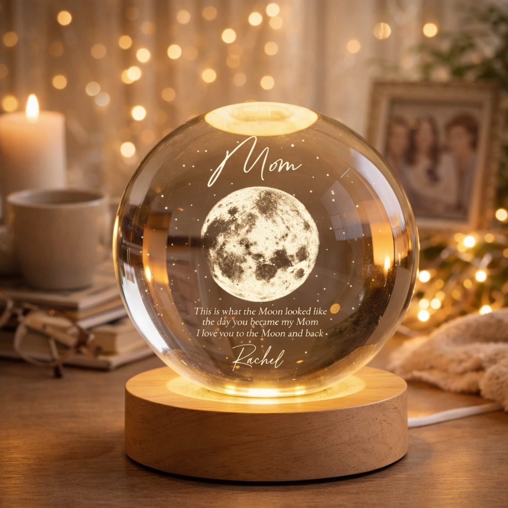 Custom Moon Phase 3D Crystal Ball LED Night Light Unique Gift for Mom Mother's Day Gift