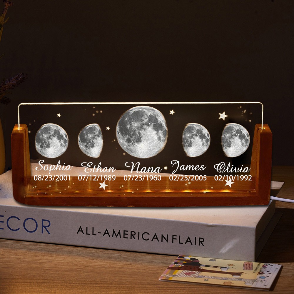 Custom Moon Phase Night Light By Date with Kids Names Gifts for Mom Nana New Mom Gift Mother's Day Gift