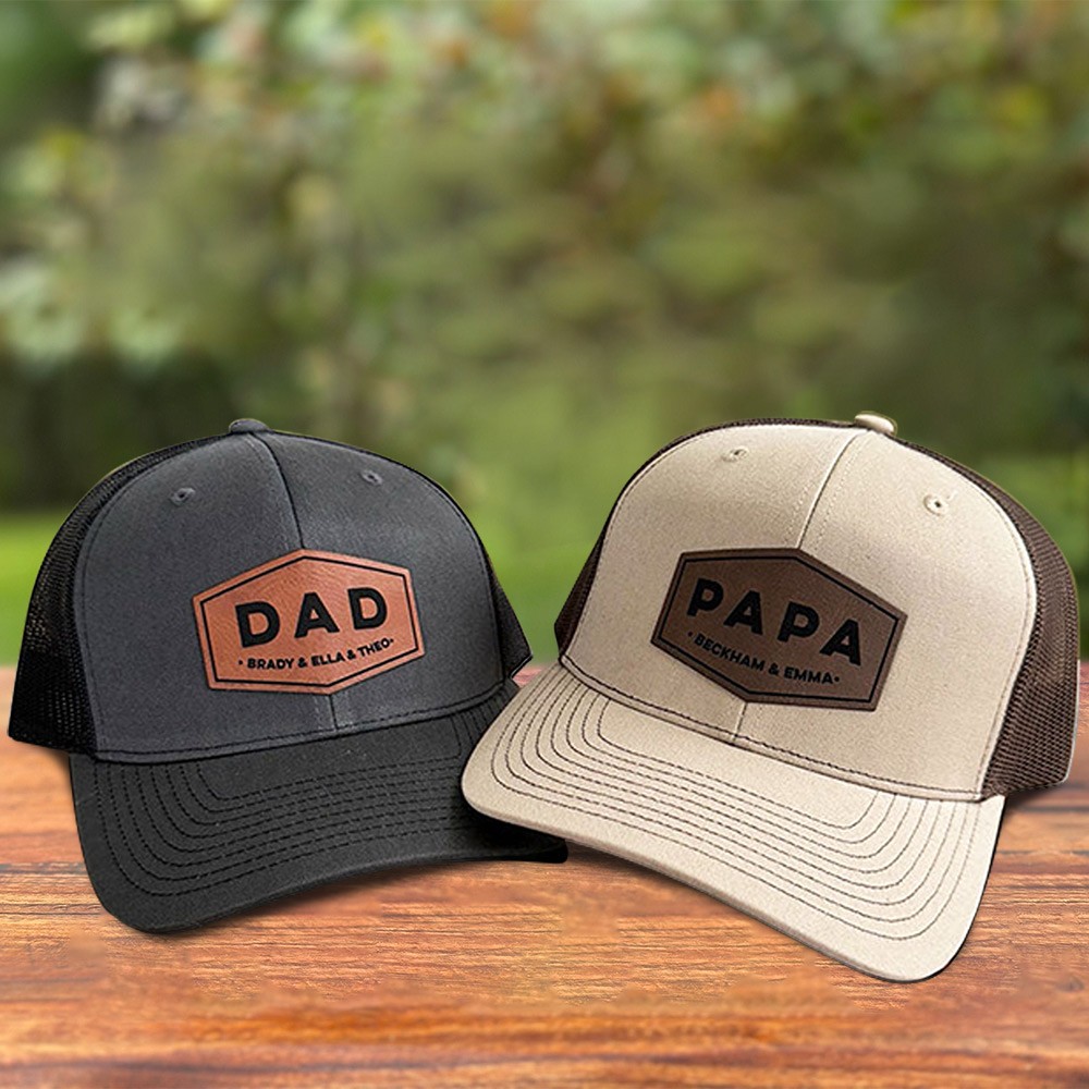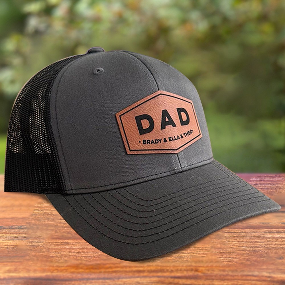 Custom Pa-aw Real Leather Patch Hat Snapback Cap With Kids Names Unique Gifts for Papa New Dad Gift Ideas