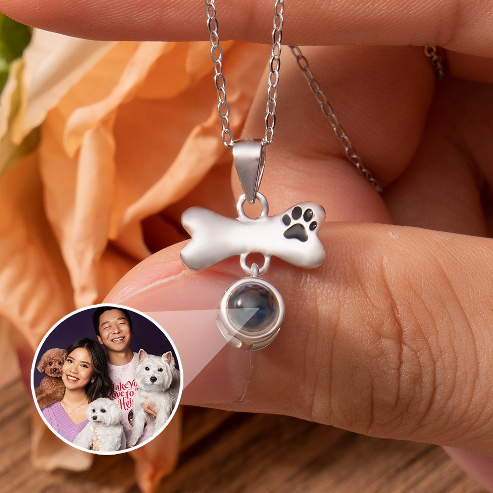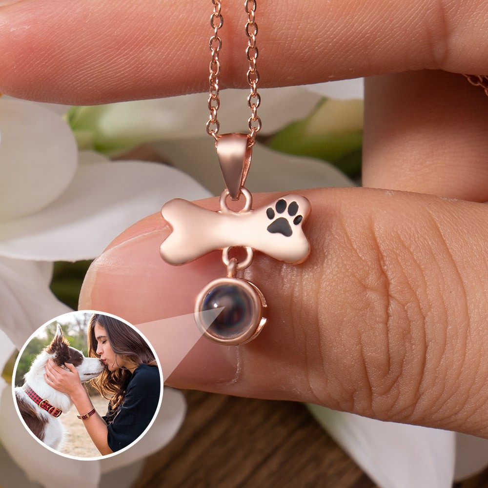 Custom Pet Paw Print Bone Photo Projection Necklace With Picture Inside Unique Gift For Pet Lover