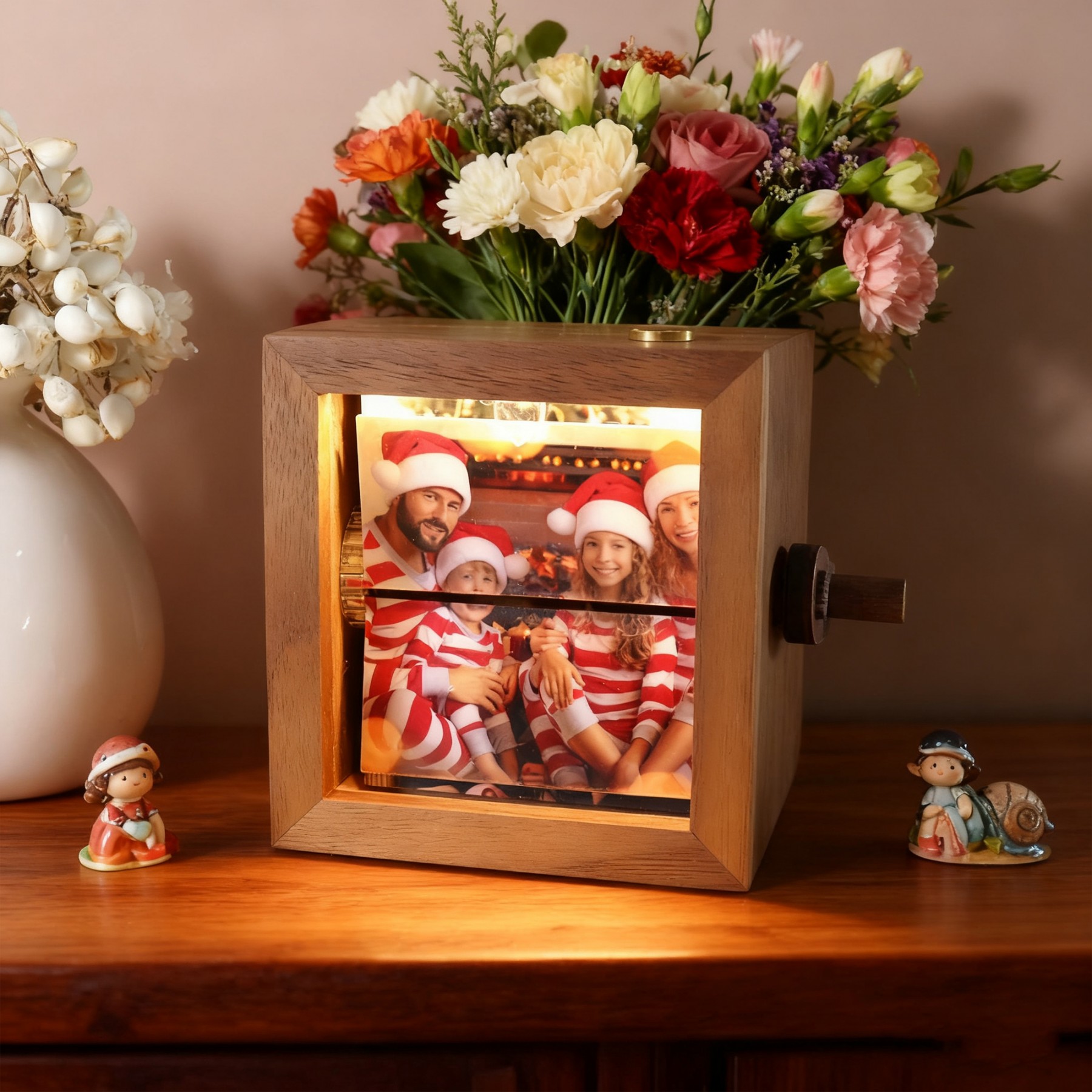 Custom Photo Flipbook Wooden Box with Light Unique Wedding Anniversary Gifts Christmas Gift