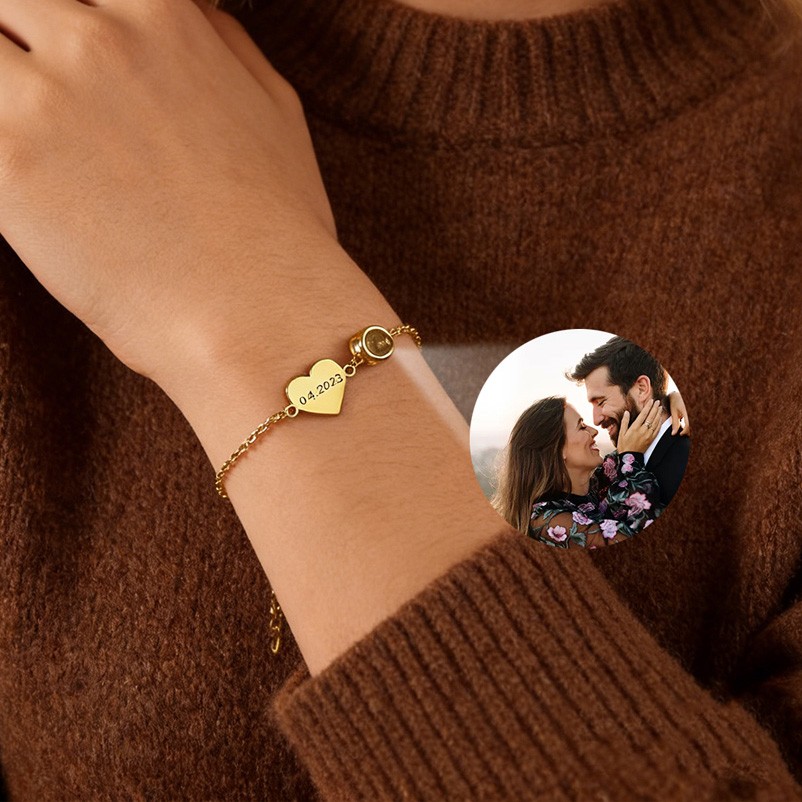 Custom Photo Projection Memorial Bracelet With Picture Inside for Women Anniversary Gift Valentine's Day Gifts for Her
