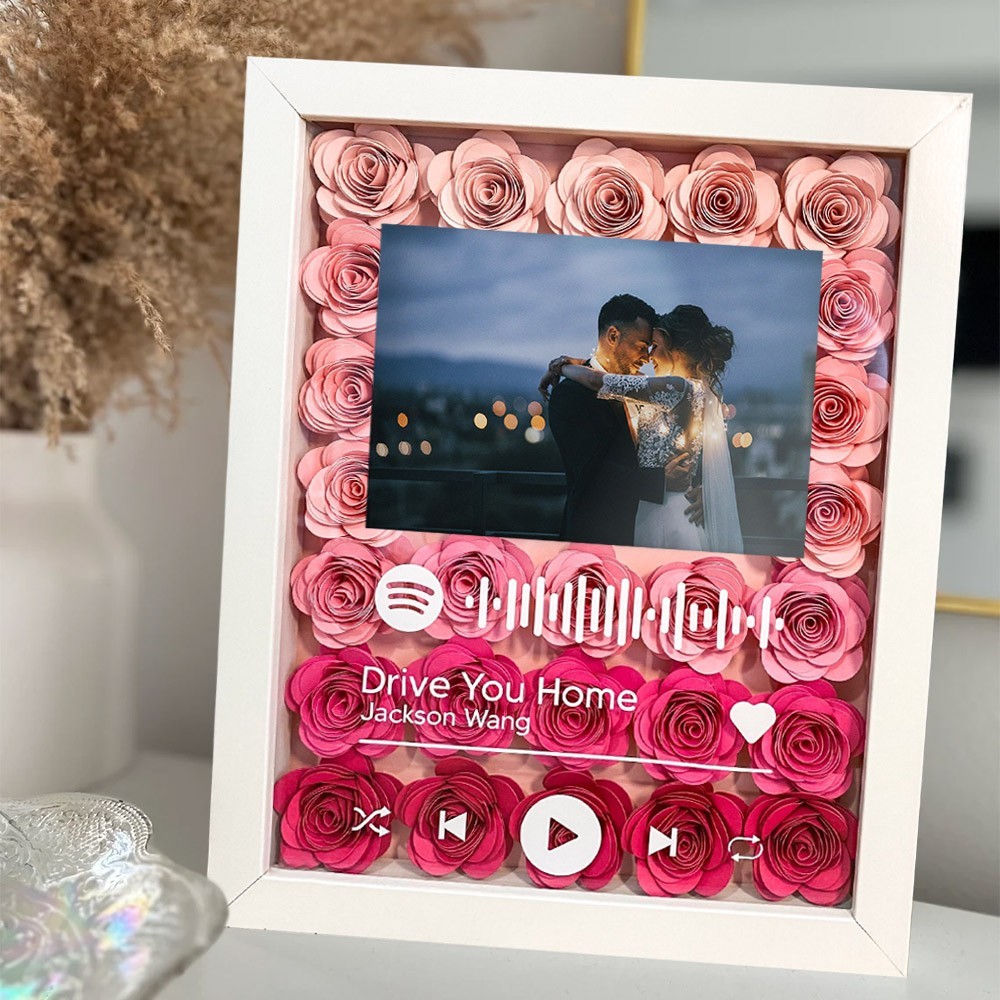 Custom Photo Spotify Code Flower Shadow Box Unique Couple Gift For Her Christmas Gifts