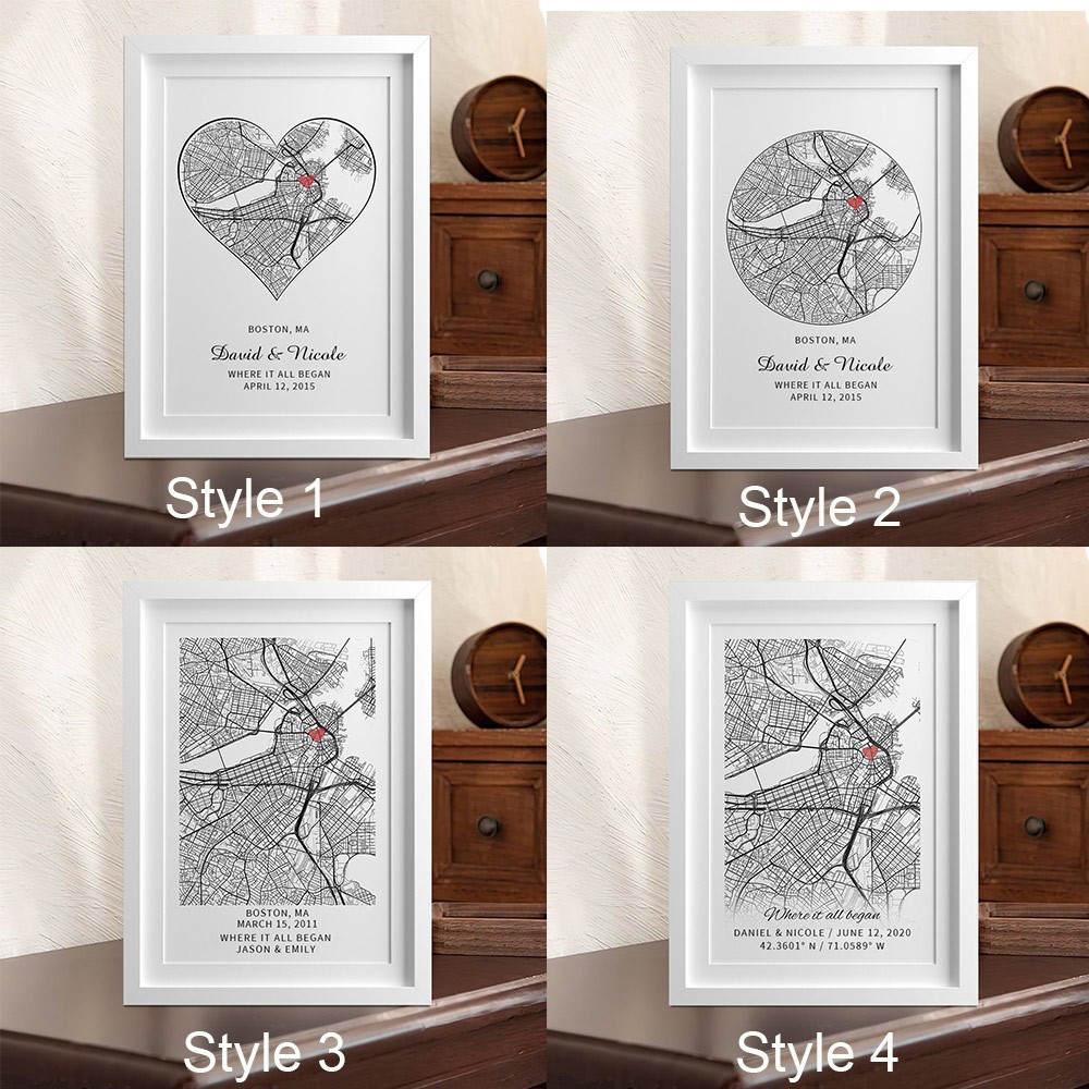 Custom Where It All Began Map Print Frame Wedding Anniversary Gifts for Her Valentine's Day Gifts for Couples