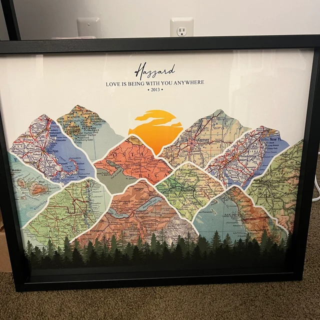 Custom Wood Mountain Adventure Travel Map Long Distance Gifts for Couple Anniversary Gift Ideas Christmas Gift