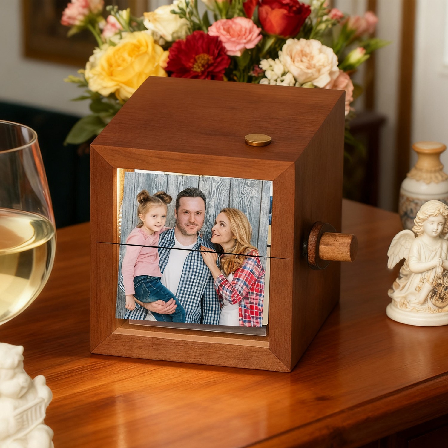 Custom Wooden Flipbook Photo Box with Light Family Keepsake Gift Anniversary Gift Christmas Gifts