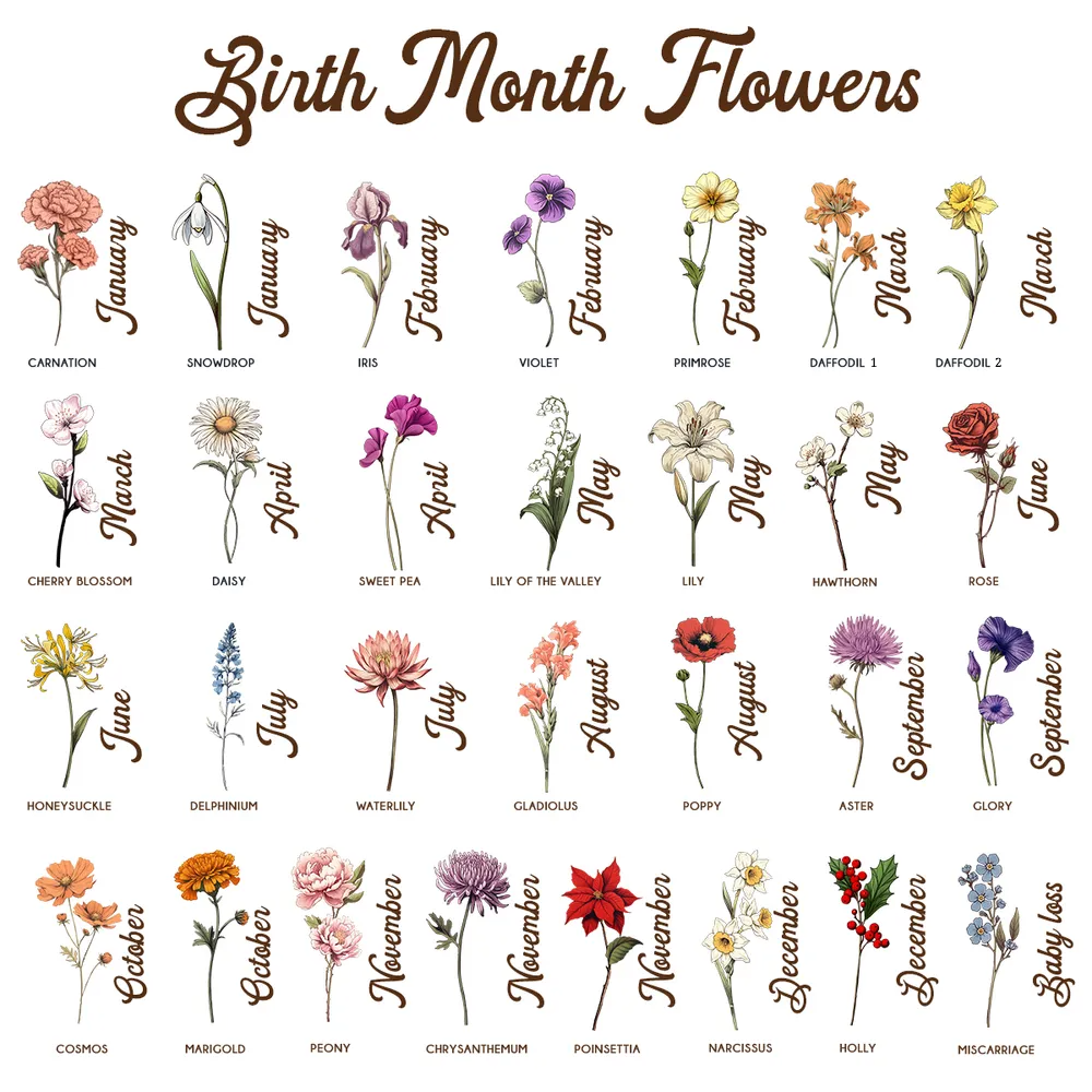 This personalized birth flower lamp features a delicate Flowers Print with Names, making it a heartfelt addition to any space. Each flower is beautifully illuminated, creating a mesmerizing Light up flower effect.