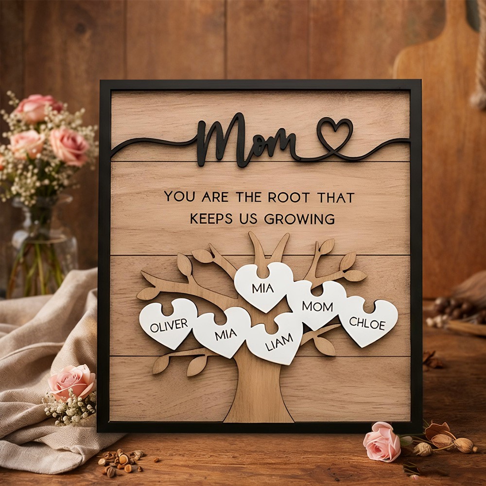 Custom Wooden Mom Puzzle Piece Sign With Kids Names Keepsake Gift For Mom Grandma Mother's Day Gifts