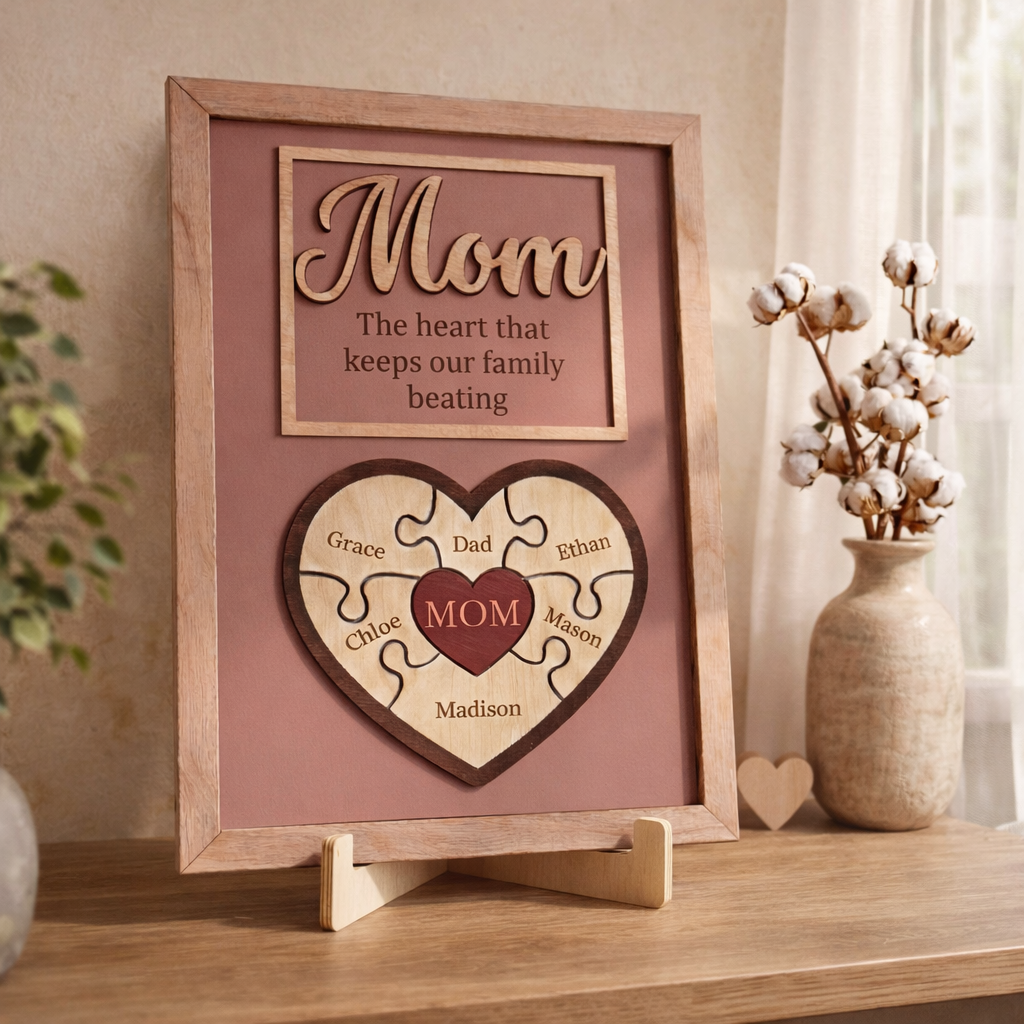 Custom Wooden Mom Puzzle Piece Sign With Kids Names Unique Family Keepsake Gift For Mom Grandma New Mom Gift Mother's Day Gifts