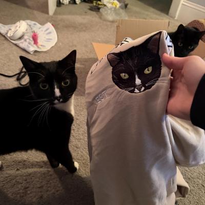Sophia 13.12.2025Ich habe das Sweatshirt für meinen Freund gekauft. Ich habe beim Auspacken und Überreichen wirklich geweint. Es ist so bedeutungsvoll und jedes noch so kleine Detail unseres süßen Jungen ist perfekt getroffen! Ich hatte Bedenken, weil er ja größtenteils schwarz ist und es schwierig sein würde, ihn so gut darzustellen – aber ich habe mich geirrt! Einfach fantastisch! Was das Sweatshirt angeht: Wenn ihr zwischen zwei Größen schwankt, nehmt lieber die größere.
