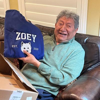 Die Stickerei war von fantastischer Qualität. Das Motiv sah genauso aus wie auf dem Foto, das ich eingeschickt hatte. Das war das perfekte Geschenk für einen Tierbesitzer! Vielleicht bestelle ich mir jetzt auch eins für meinen Hund!Getragen von Mercedes Biscotti