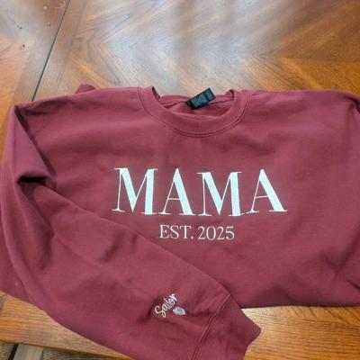 Personalisierter Mama-gestickter Sweatshirt-Hoodie mit Datumsgeschenk für Mama, Weihnachtsgeschenk1