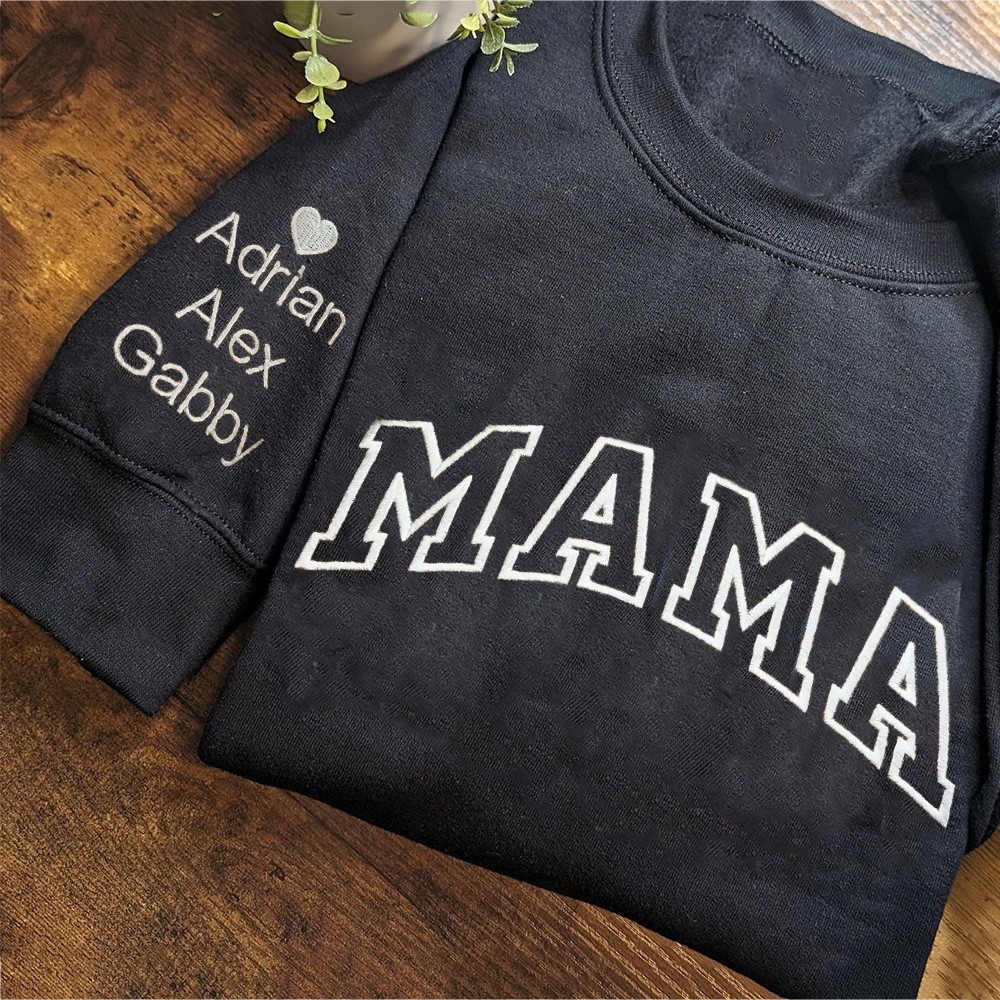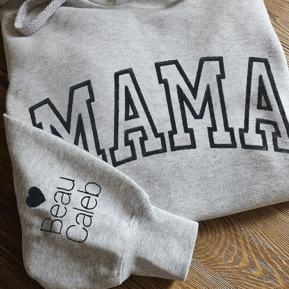 Benutzerdefinierte Mama bestickt Sweatshirt Hoodie mit Kinder Namen für Muttertag Geschenk
