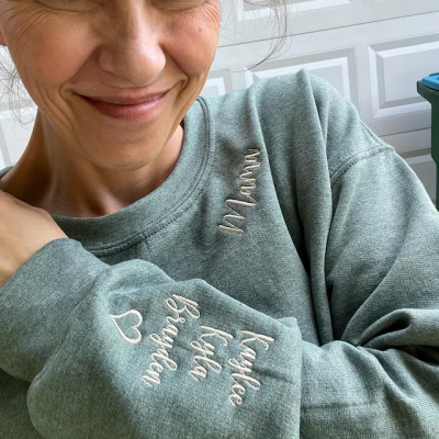 Benutzerdefinierter Mama-Sweatshirt-Hoodie mit Stickerei und Namen auf dem Ärmel, Geschenk für Mama, Oma, Muttertagsgeschenkideen
