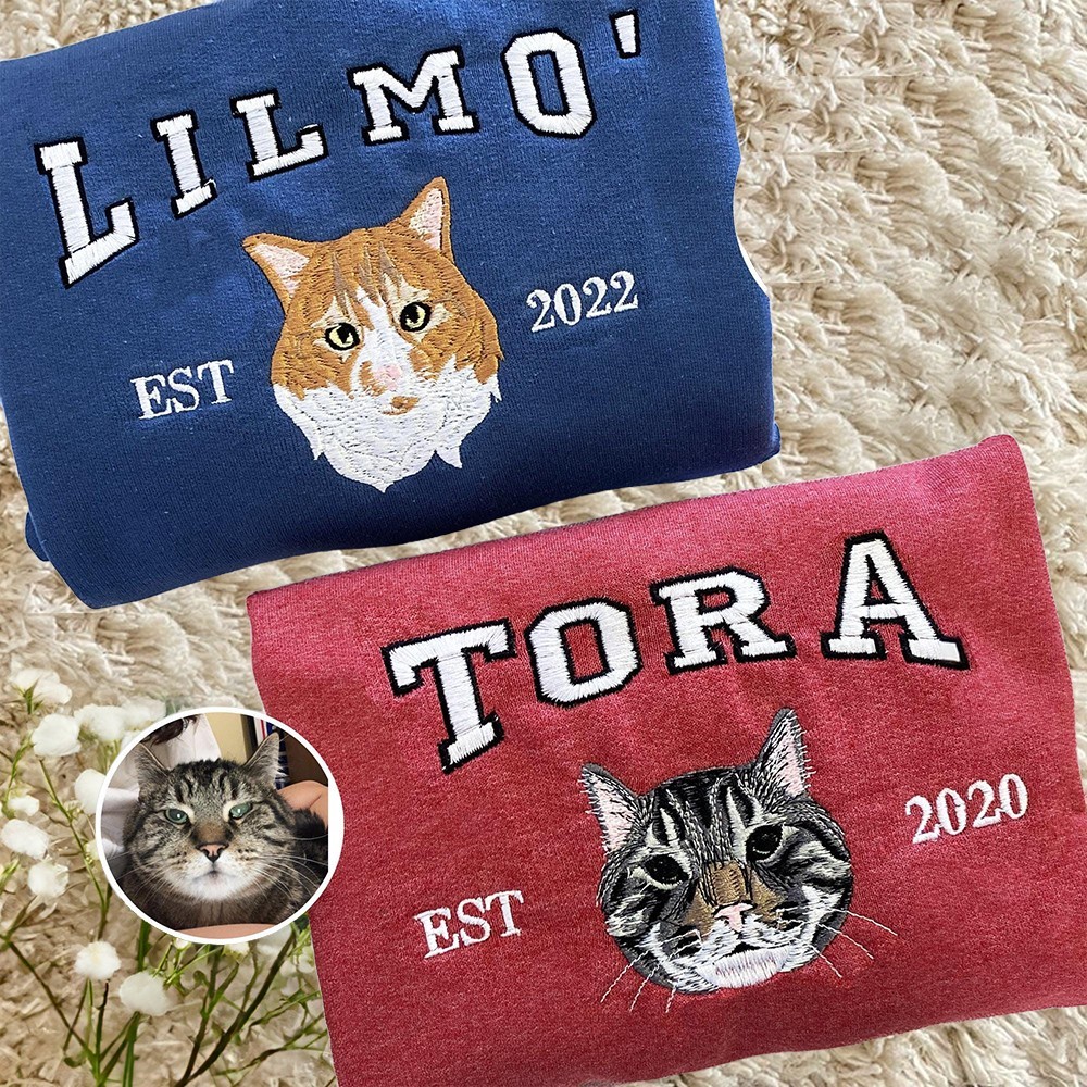 Benutzerdefiniertes Haustier-Katzenporträt mit Foto, besticktes Sweatshirt, personalisierte Katzengeschenke, einzigartige Geschenke für Katzenliebhaber, Weihnachtsgeschenk