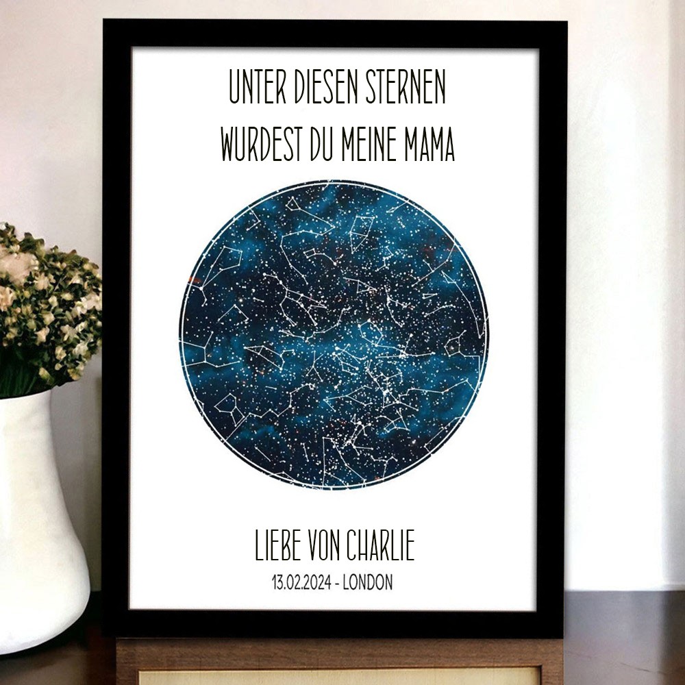 Benutzerdefiniertes Sternkarten-Rahmenschild nach Datum und Ort, einzigartige Familiengeschenke für Mama, Oma, Geburtstagsgeschenk für die Frau