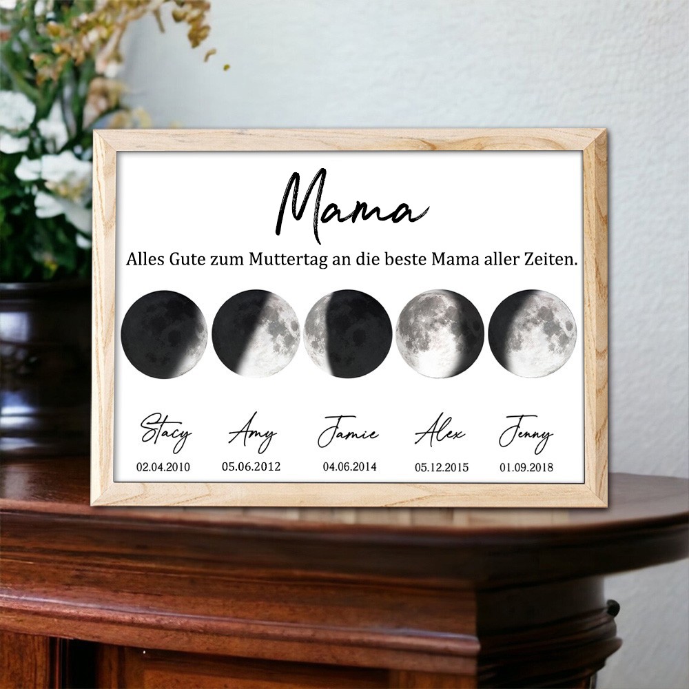 Die beste Mama aller Zeiten - personalisierte Mondphasen-Druck Holzrahmen-Schild mit Kindernamen. Perfekte Geschenke für Mama, Oma - einzigartige Ideen für Muttertagsgeschenke und Babyparty-Geschenke