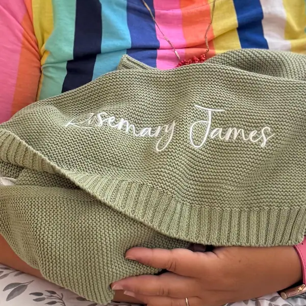 Individuell bestickte Babydecke mit Namen – Einzigartiges Geschenk zur Babyparty – Erinnerungsstück für Kinder – Weihnachtsgeschenk
