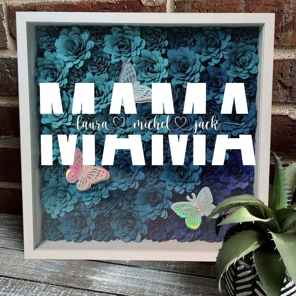 Individuell bedruckte Holzkiste mit Schmetterlingen und Kindernamen, einzigartiges Geschenk für Mama und Oma, Muttertagsgeschenk