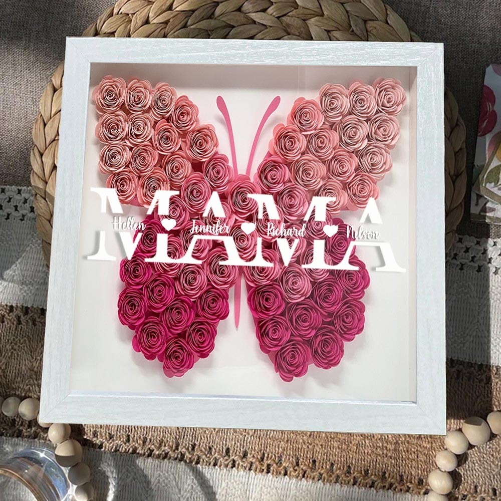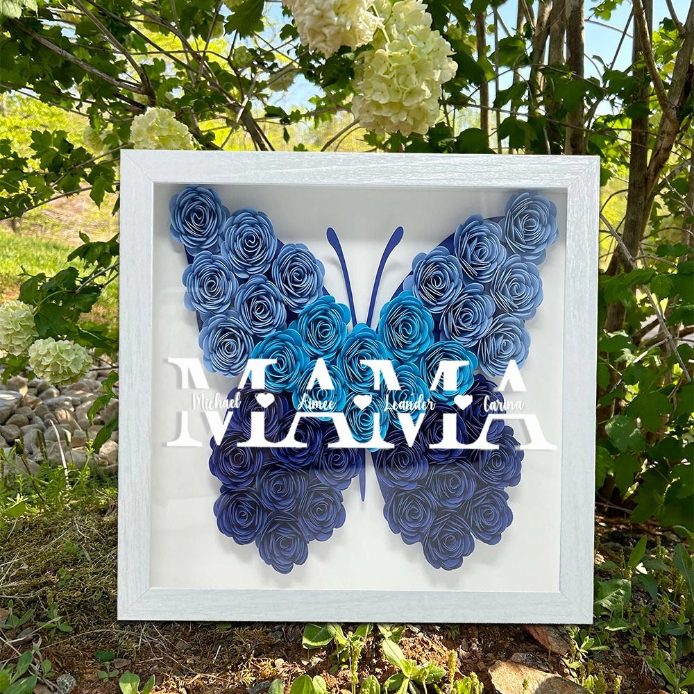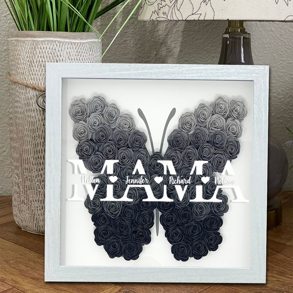Benutzerdefinierte Kunstdruck Mama Schmetterling geformt Blume Schatten Holzkiste einzigartiges Geschenk für Mama Oma Geburtstagsgeschenkideen Muttertagsgeschenkideen