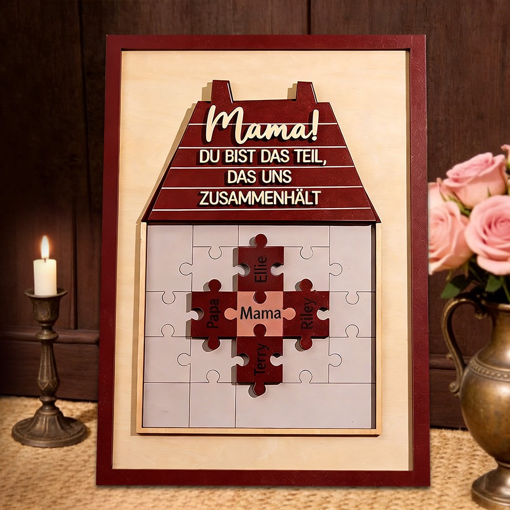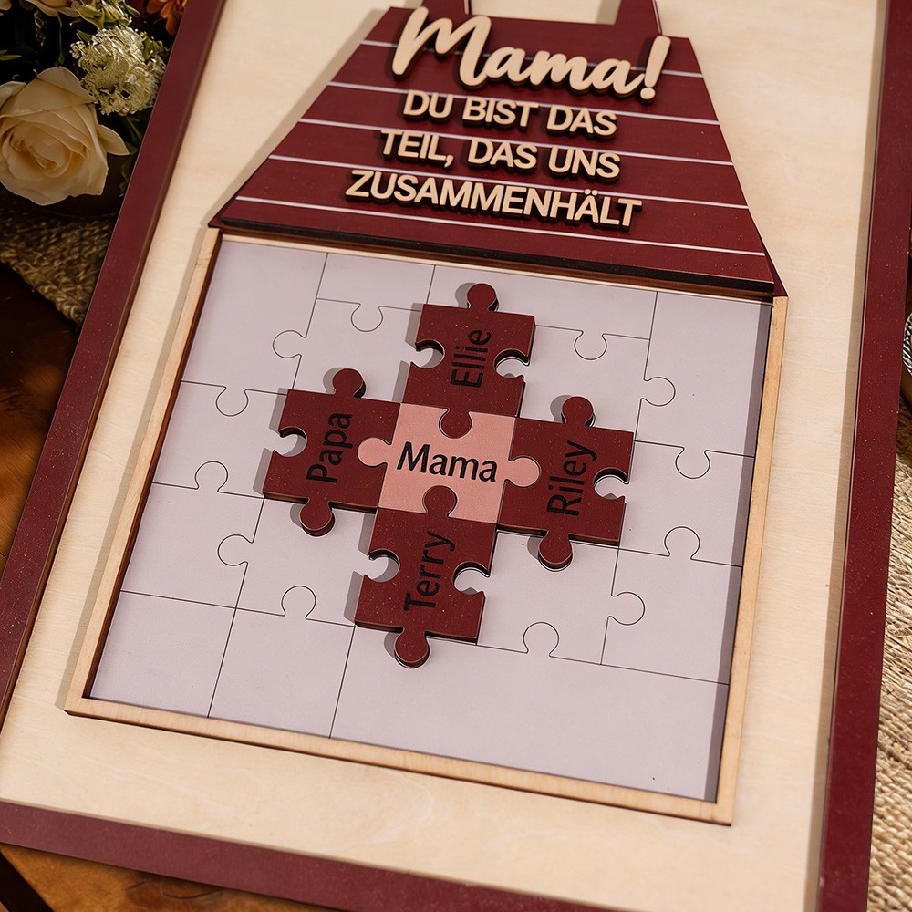 Mama, du bist das Puzzleteil, das uns zusammenhält – personalisiertes Namensschild mit Puzzleteil und Kindernamen – Geschenkidee zum Muttertag