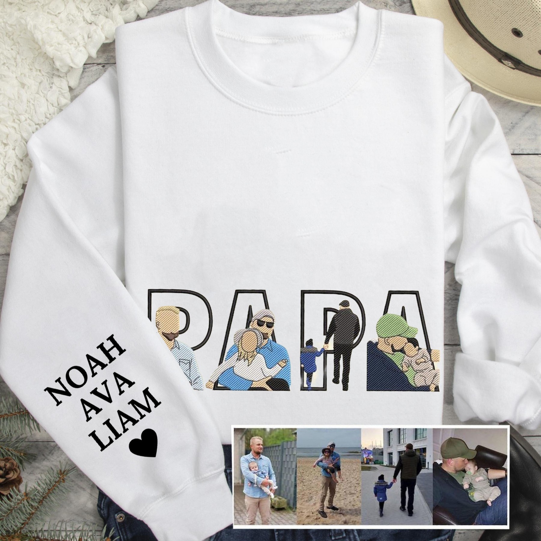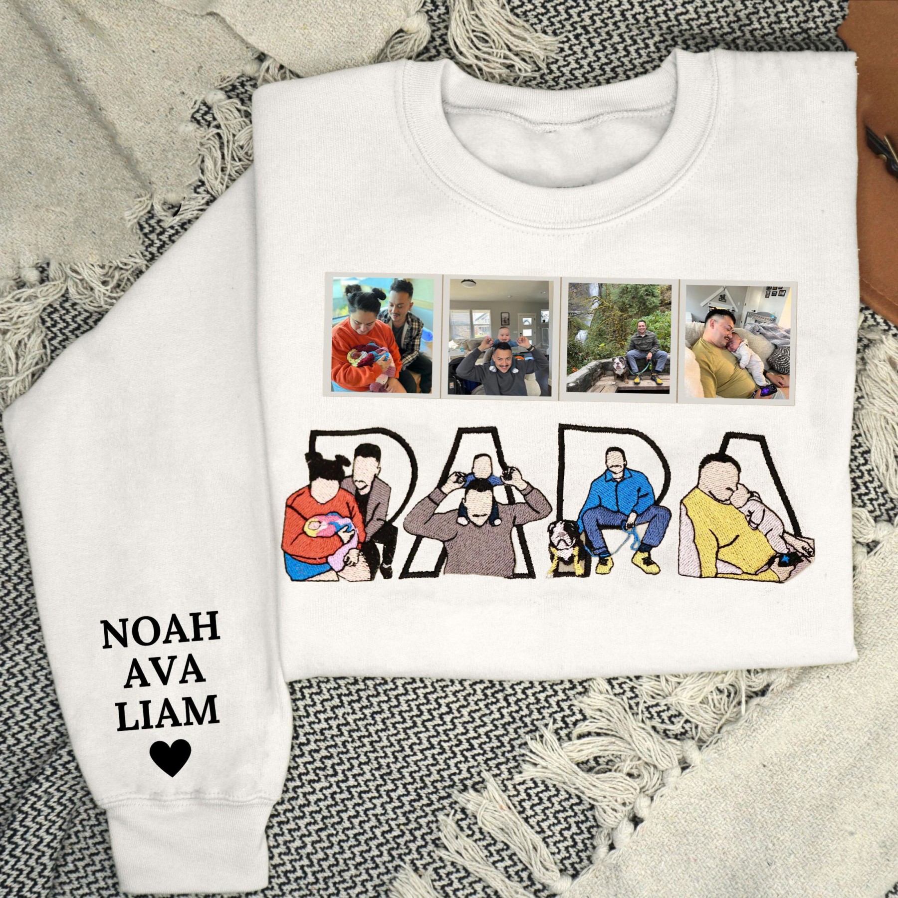 Papa Portrait Bestickter Hoodie, Personalisiertes PAPA Foto Stickerei Sweatshirt, Personalisierter Papa Hoodie, Gedenkshirt Geschenke für Papa