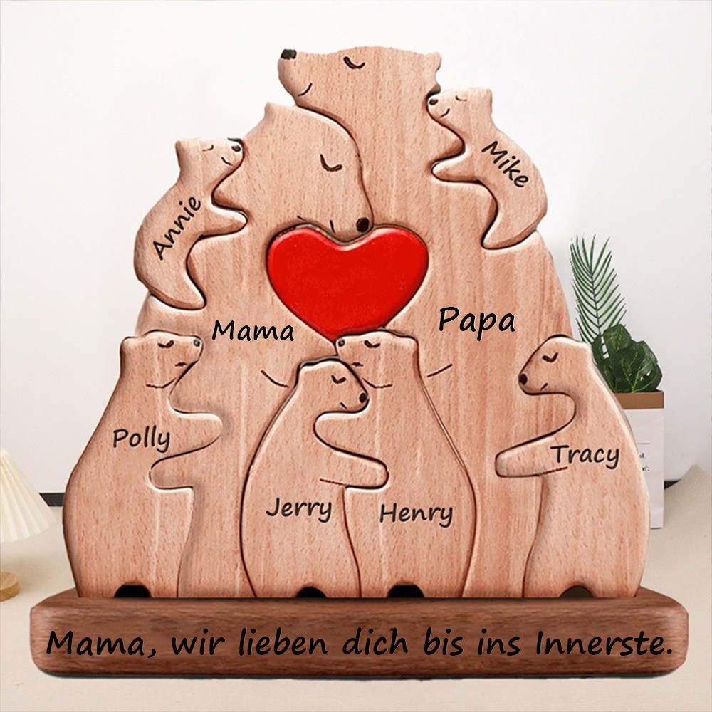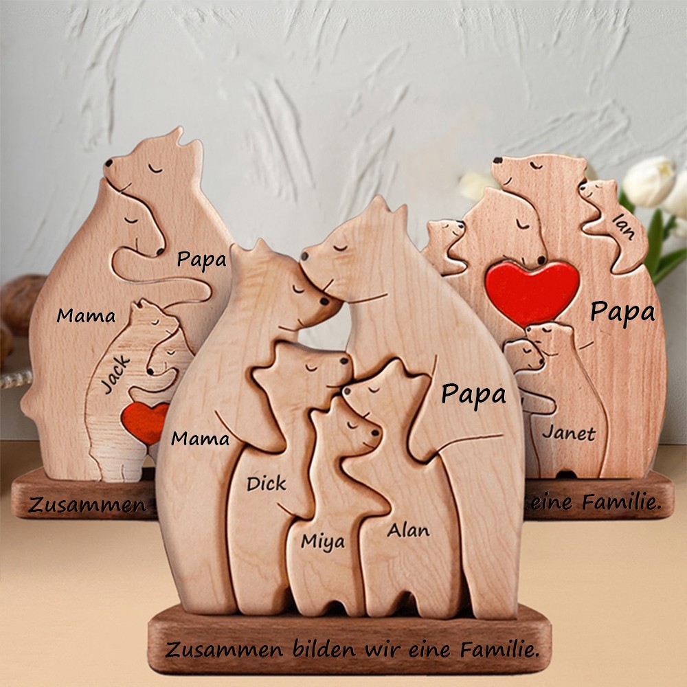 Personalisierbares Holzpuzzle mit Bärenfamilie – Individuelle Familientikette für Weihnachten