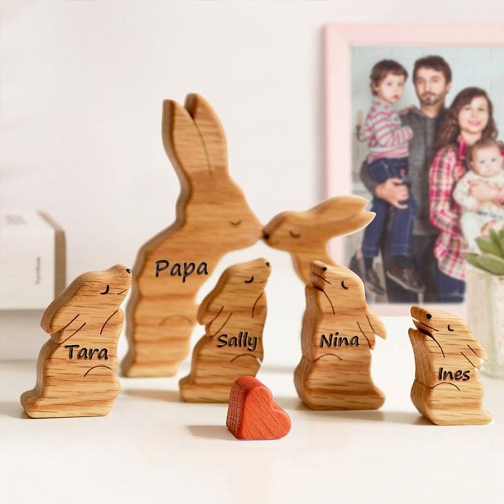 Personalisierbares Holzpuzzle mit Kaninchen-Familie – Tierfiguren als Andenken und Weihnachtsgeschenkideen