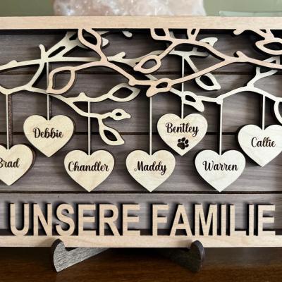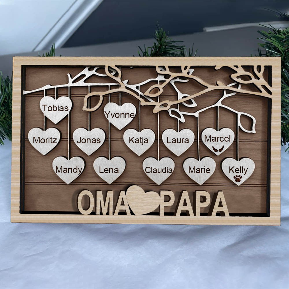 Personalisiertes Familien-Holzschild „Baum des Lebens“ mit Gravur des Namens des Kindes, einzigartiges Familiengeschenk für Mama und Oma, Geschenkideen zum Muttertag