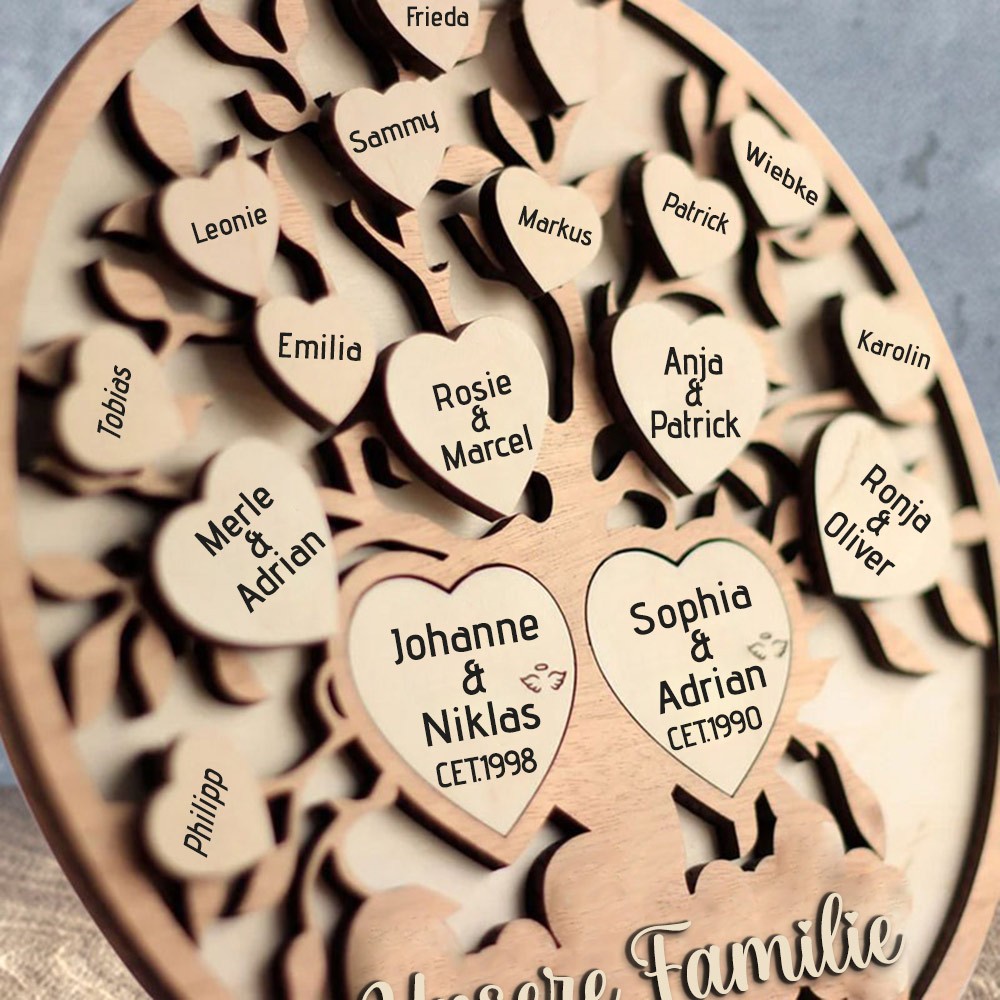 Personalisiertes Familienschild „Baum des Lebens“ aus Holz mit Kindernamen – Familiengeschenke, kreatives Geschenk für Mama, Oma, einzigartige Muttertagsgeschenke
