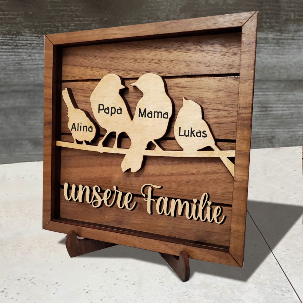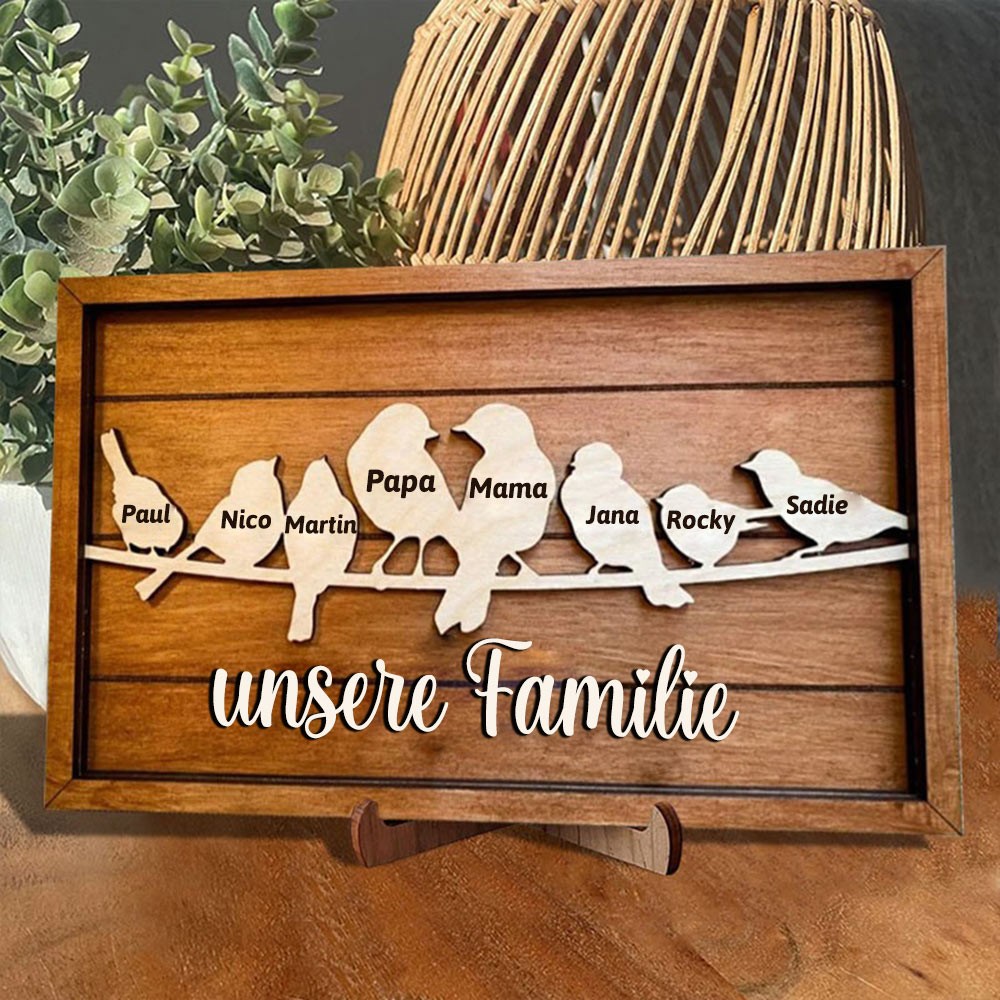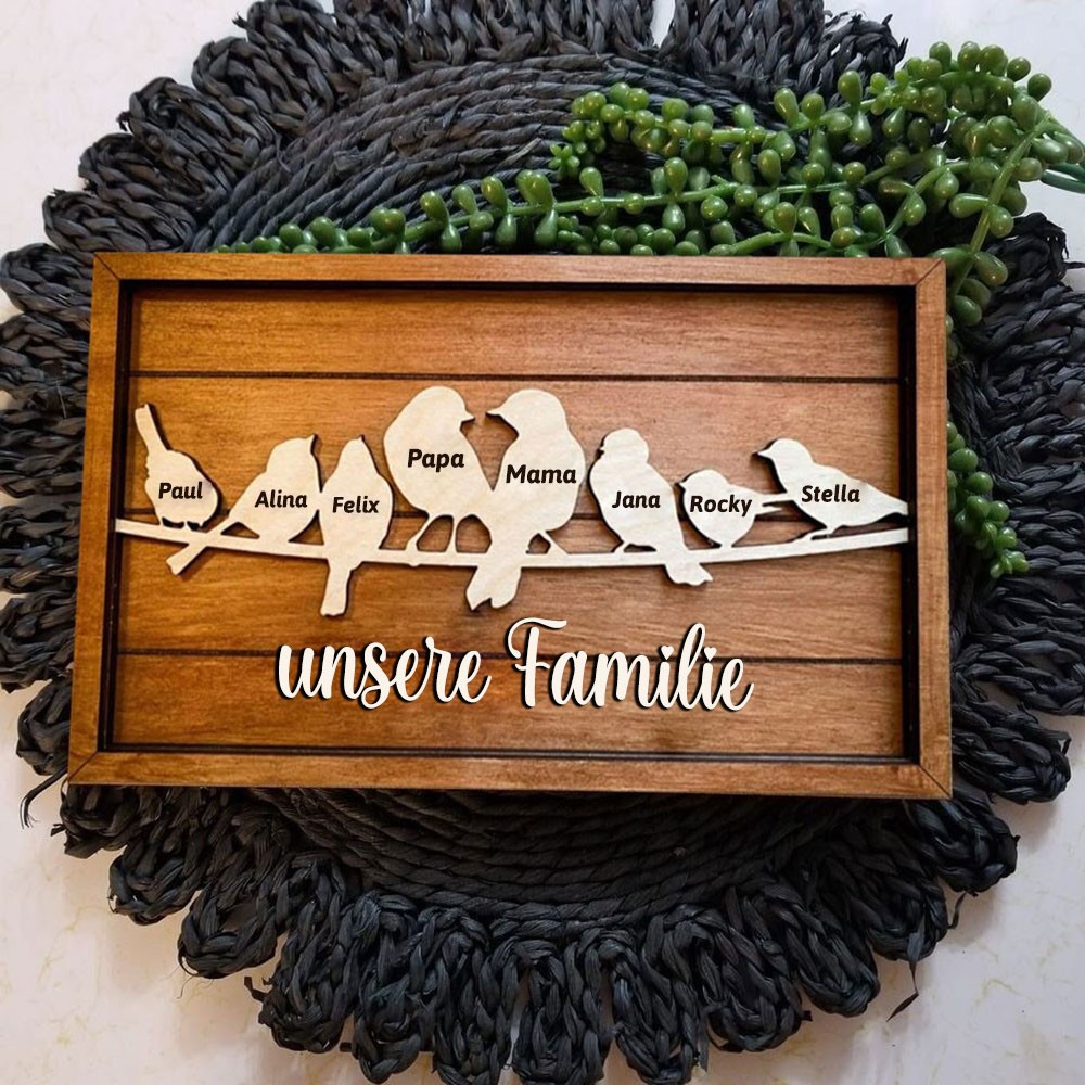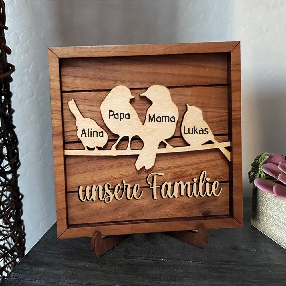 Personalisiertes Vogelfamilien-Stammbaumschild aus Holz mit Kindernamen, Familiendekoration, Geschenk für Mama, Oma, besondere Geschenkideen zum Muttertag