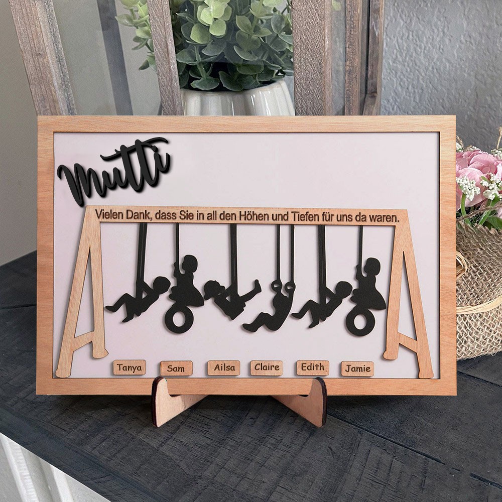 Personalisiertes Schaukelschild für Mama mit Holzrahmen und Kindernamen – Geschenkideen zum Muttertag, Andenken für Mama und Oma