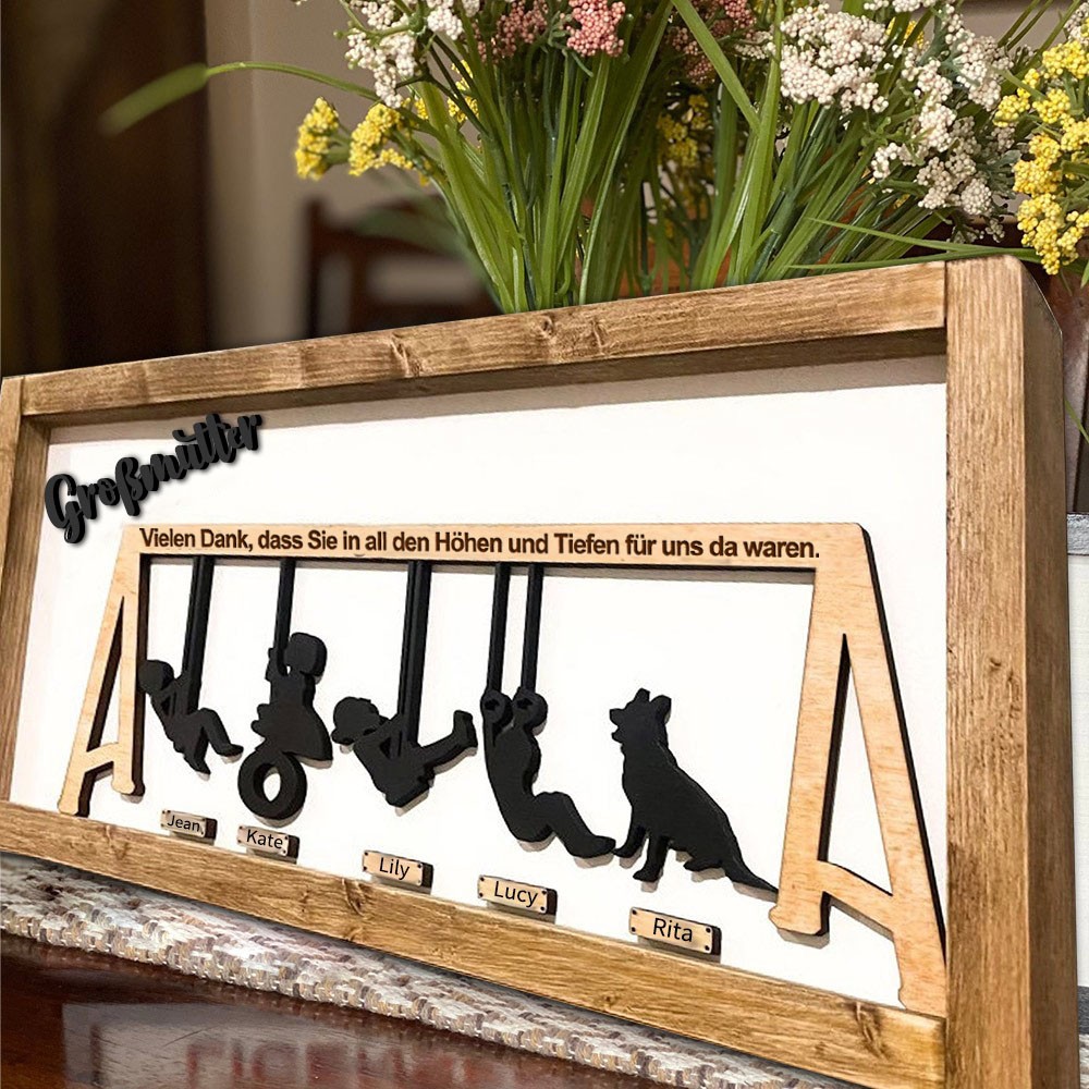 Personalisiertes Schaukelschild aus Holz für Oma mit Namen der Enkelkinder – einzigartige Geschenkideen zum Muttertag, Familienandenken für Mama und Oma