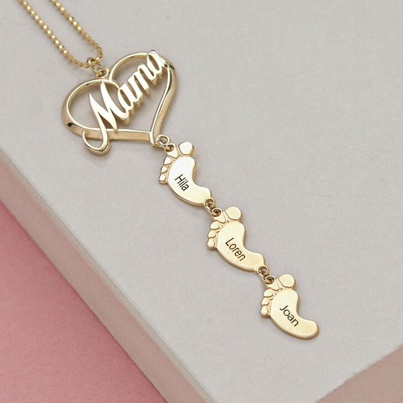 Personalisierte Baby Füße Anhänger Namen Halskette Familie Andenken Geschenk für Mama Oma