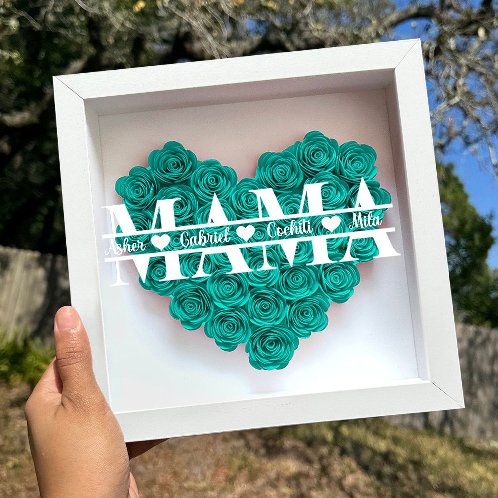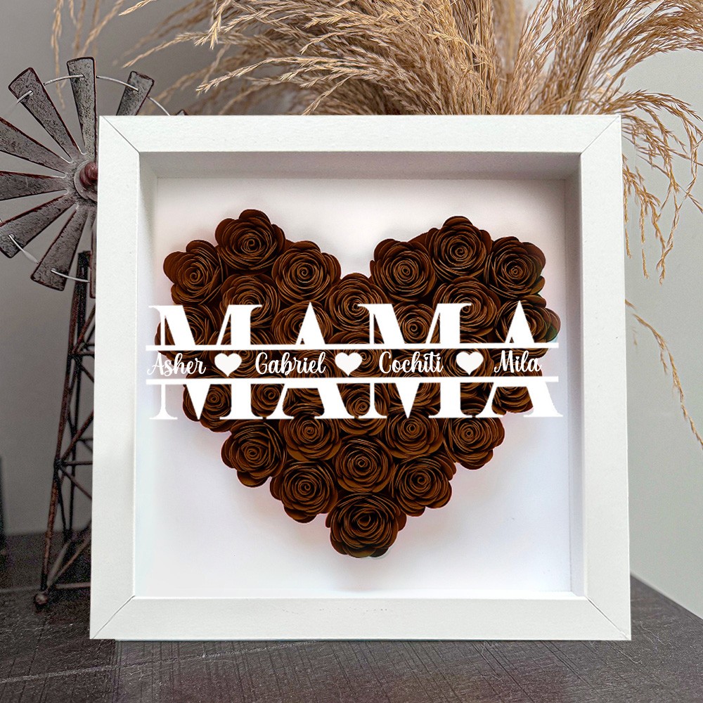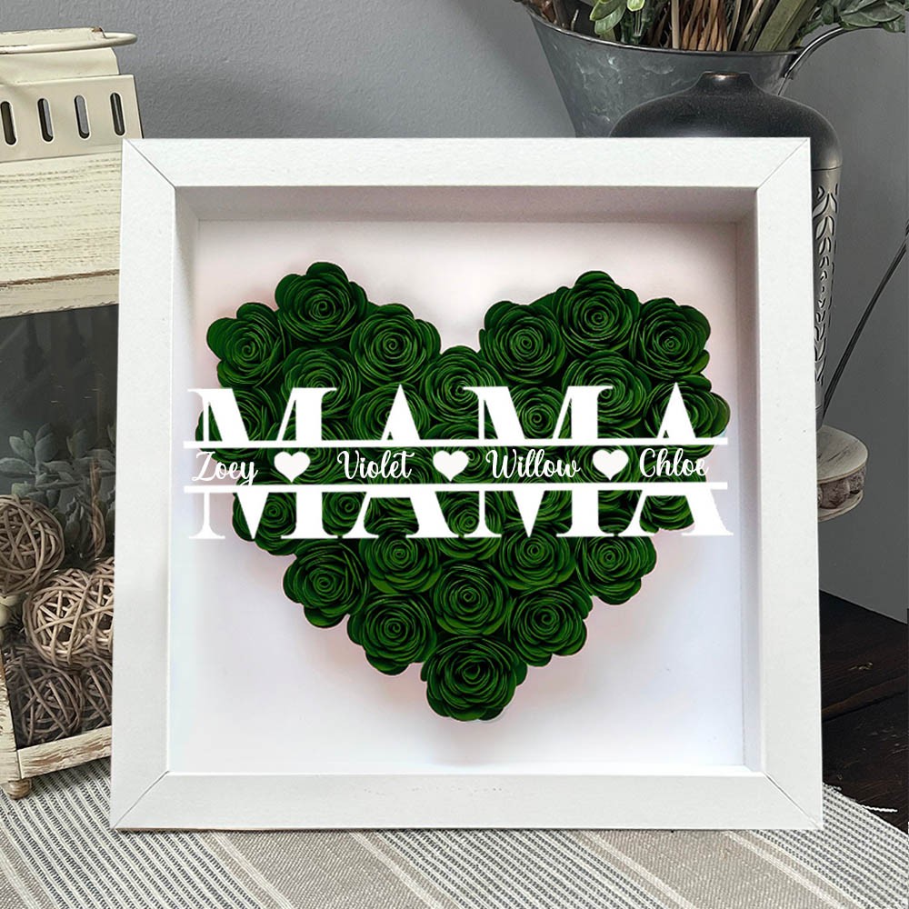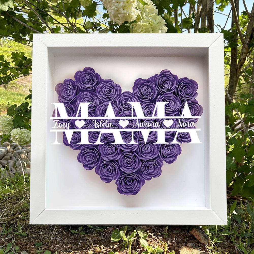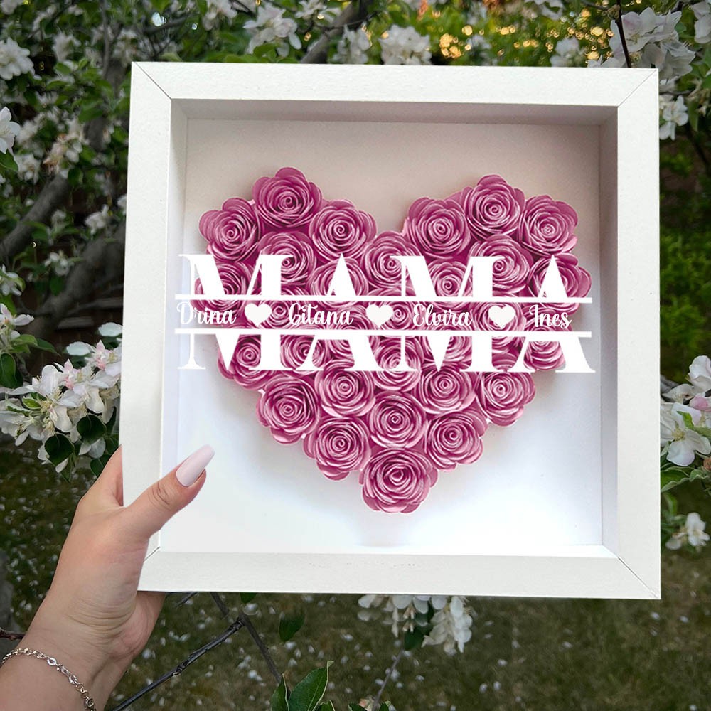 Personalisierte Blumen-Schattenschachtel für Mama mit Kindernamen – Einzigartiges Erinnerungsstück Geschenk für Mama und Oma