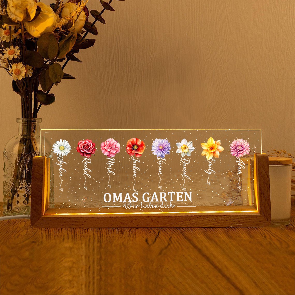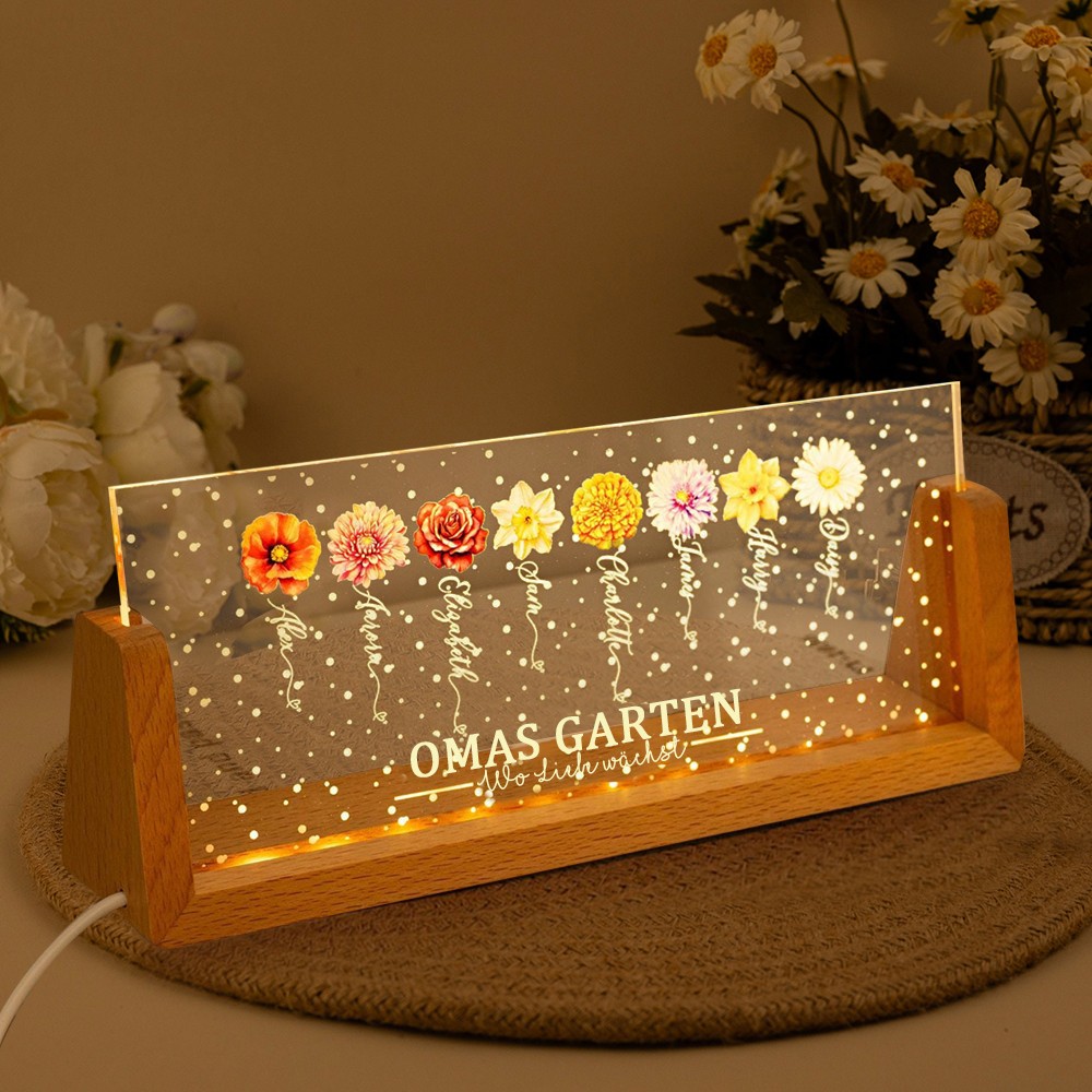 Personalisierte Garten-Geburtstagsmonat-Blumen-Nachtlicht für Oma, Acryl-LED-Nachtlicht, Zimmerlampe, Geschenk von Enkeln für Oma, Muttertagsgeschenk.