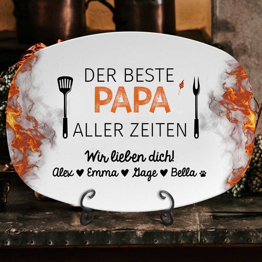 Personalisierte Grillplatte als Geschenk „Der beste Papa aller Zeiten“ mit den Namen der Kinder, individuell gestaltete Grillplatte, einzigartiges Vatertagsgeschenk-Idee für Papa
